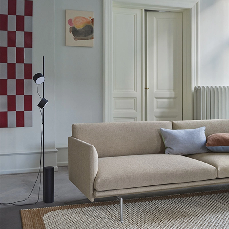 Outline est un canapé aux proportions généreuses, contrastant avec une apparence délicate et sophistiquée. La structure fine, les accoudoirs et les minces coussins de dossier maximisent l’espace disponible pour s’asseoir en disposant du meilleur confort. Muuto a ici la volonté de mêler utile et fonctionnel. Le canapé Outline dévoile une présence quasi architecturale dans l’intérieur contemporain. Les pieds effilés et discrets en métal laqué, sont nichés sous la structure, contribuant à l’allure légère du canapé. Pour Outline, le studio Anderssen & Voll n’a fait aucun compromis visuel ou fonctionnel. En effet, le canapé Outline dispose d’une assise profonde et confortable, ainsi qu’une extrême légèreté visuelle. Ses finitions en textiles ou en cuir, font du canapé Outline, un canapé d’exception au design rectangulaire. Les contours nettement dessinés, permettant de sortir des lignes classiques des canapés scandinaves des années 60, font l’originalité du canapé Outline. Ses lignes architecturales et raffinées, inspirées des influences scandinaves, montre un canapé accueillant, moderne, délicat, sophistiqué et intemporel. De plus, son rembourrage de qualité supérieure offre une assise douce. Sa structure solide est fabriquée en aluminium peint par poudrage. L’assise, le dossier et les accoudoirs sont recouverts de cuir ou d’étoffe haut de gamme. Grâce à son charme discret, Outline s’intègre dans tous les intérieurs, aussi bien au milieu du salon que contre un mur, dans un style contemporain ou industriel. Ce canapé est disponible en 2 ou 3 places.