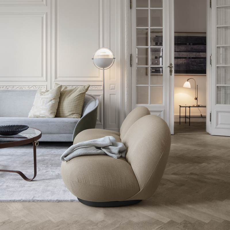 Rééditée aujourd’hui par Gubi, la collection Pacha a été conçue à l’origine par Pierre Paulin en 1975. Le designer français a imaginé une nouvelle forme de design, remplaçant l’austérité d’après-guerre par une approche nouvelle beaucoup plus vigoureuse. Pierre Paulin a réussi à donner une véritable élégance aux formes arrondies du fauteuil Pacha en trouvant les proportions parfaites. L’assise est légèrement surélevée sur sa base et les coutures viennent souligner la silhouette. Pierre Paulin été aussi l’un des premiers à se débarrasser des pieds des fauteuils et ainsi instaurer un nouveau mode de vie ou l’on s’assoit plus proche du sol. Le résultat est un fauteuil moderne et durable qui offre confort et convivialité. Désormais disponible en version canapé, Pacha est une série unique qui donne vie et caractère à tous les styles d’intérieurs.