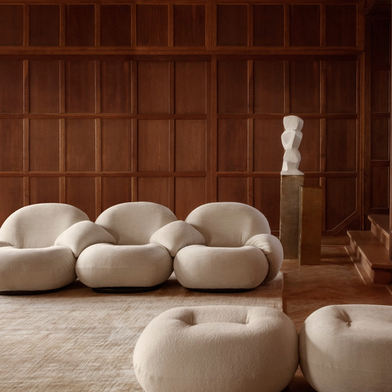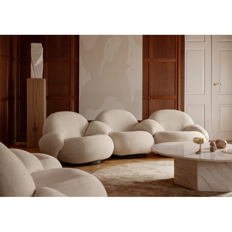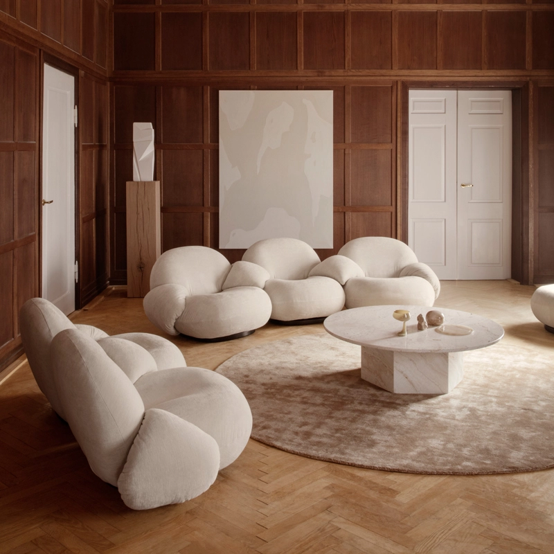 Pacha a été conçue à l’origine par Pierre Paulin en 1975. Le designer français a imaginé une nouvelle forme de design, remplaçant l’austérité d’après-guerre par une approche nouvelle beaucoup plus vigoureuse. Pierre Paulin a réussi à donner une véritable élégance aux formes arrondies du fauteuil