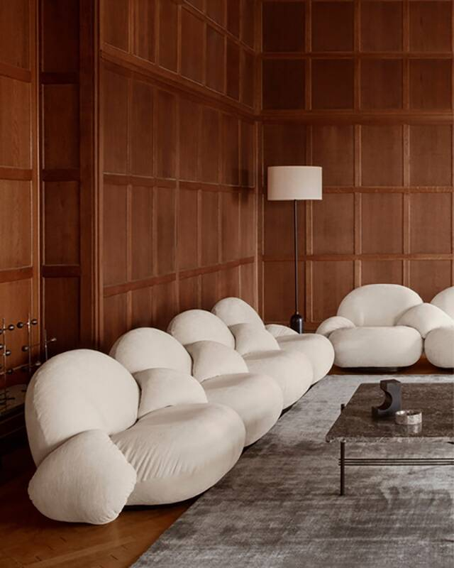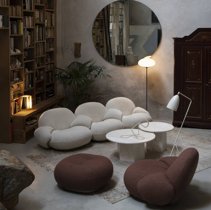 Rééditée aujourd’hui par Gubi, la collection Pacha a été conçue à l’origine par Pierre Paulin en 1975. Le designer français a imaginé une nouvelle forme de design, remplaçant l’austérité d’après-guerre par une approche nouvelle beaucoup plus vigoureuse. Pierre Paulin a réussi à donner une véritable élégance aux formes arrondies du fauteuil Pacha en trouvant les proportions parfaites. L’assise est légèrement surélevée sur sa base et les coutures viennent souligner la silhouette. Pierre Paulin été aussi l’un des premiers à se débarrasser des pieds des fauteuils et ainsi instaurer un nouveau mode de vie ou l’on s’assoit plus proche du sol. Le résultat est un fauteuil moderne et durable qui offre confort et convivialité. Désormais disponible en version canapé, Pacha est une série unique qui donne vie et caractère à tous les styles d’intérieurs.