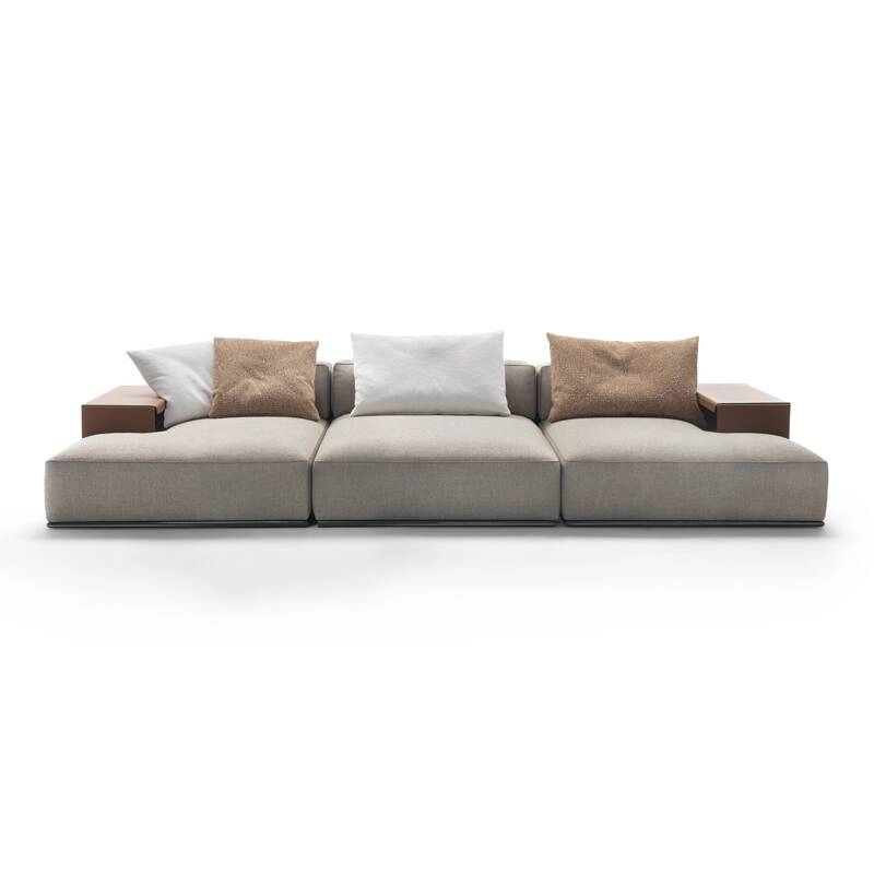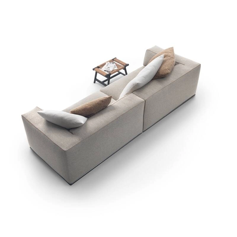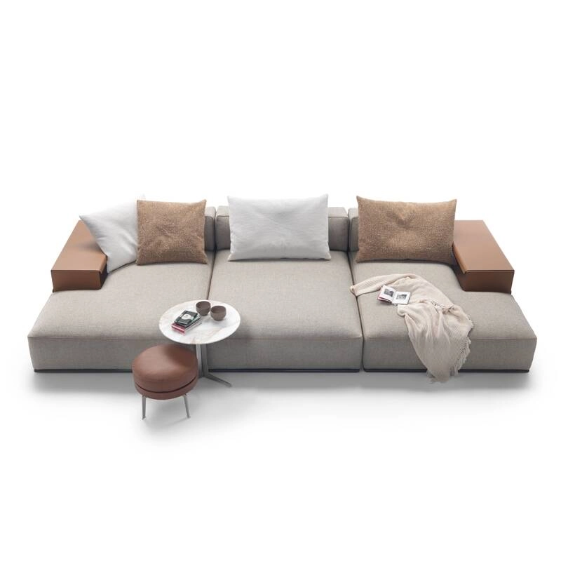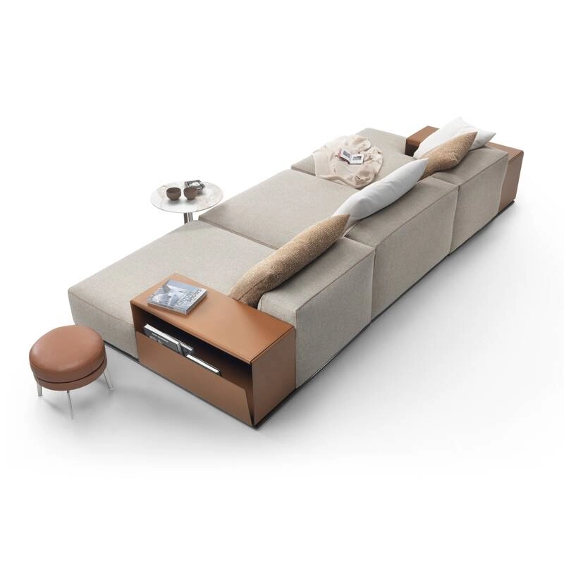 Composé d'éléments rembourrés rigoureux et assemblables de diverses manières, le système de sièges Perry introduit une nouvelle façon de concevoir le séjour, avec des compositions originales et des modules dont la forme irrégulière permet d'interrompre la linéarité des configurations en leur donnant un rythme plus dynamique et un aspect plus informel. Dessiné par Antonio Citterio pour Flexform, Perry se distingue par ses volumes souples et généreusement rembourrés en plume d'oie, ses proportions équilibrées et ses détails de confection raffinés comme le passepoil qui dessine la silhouette des éléments rembourrés. Un autre détail très caractéristique est la possibilité de remplacer l'accoudoir rembourré traditionnel par un élément de rangement élégant et fonctionnel en cuir de sellerie, équipé d'un compartiment pratique. La variété des modules disponibles et les différentes finitions proposées permettent d'élaborer un grand nombre de compositions originales.