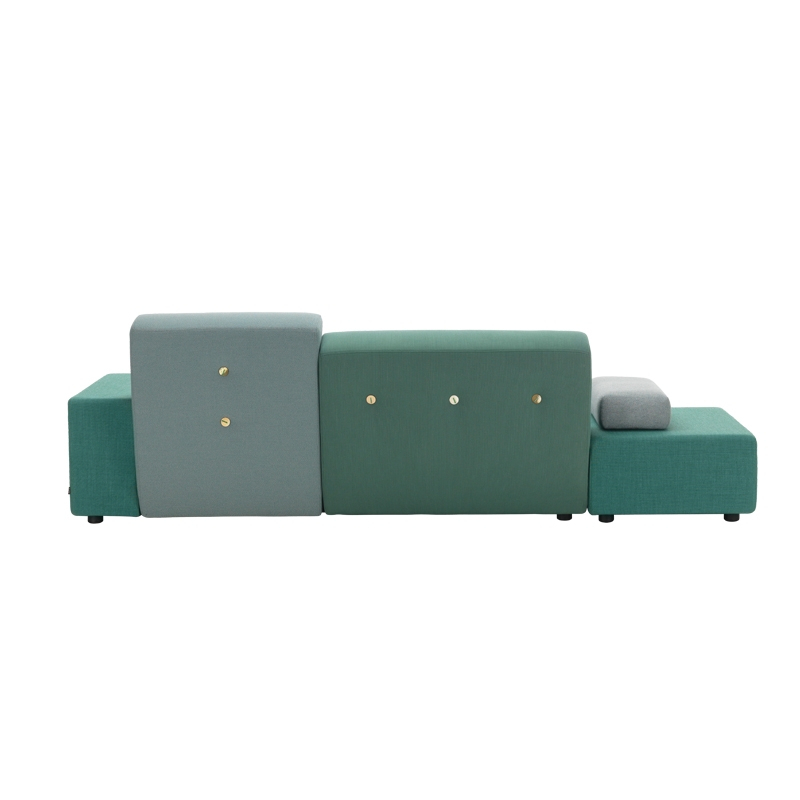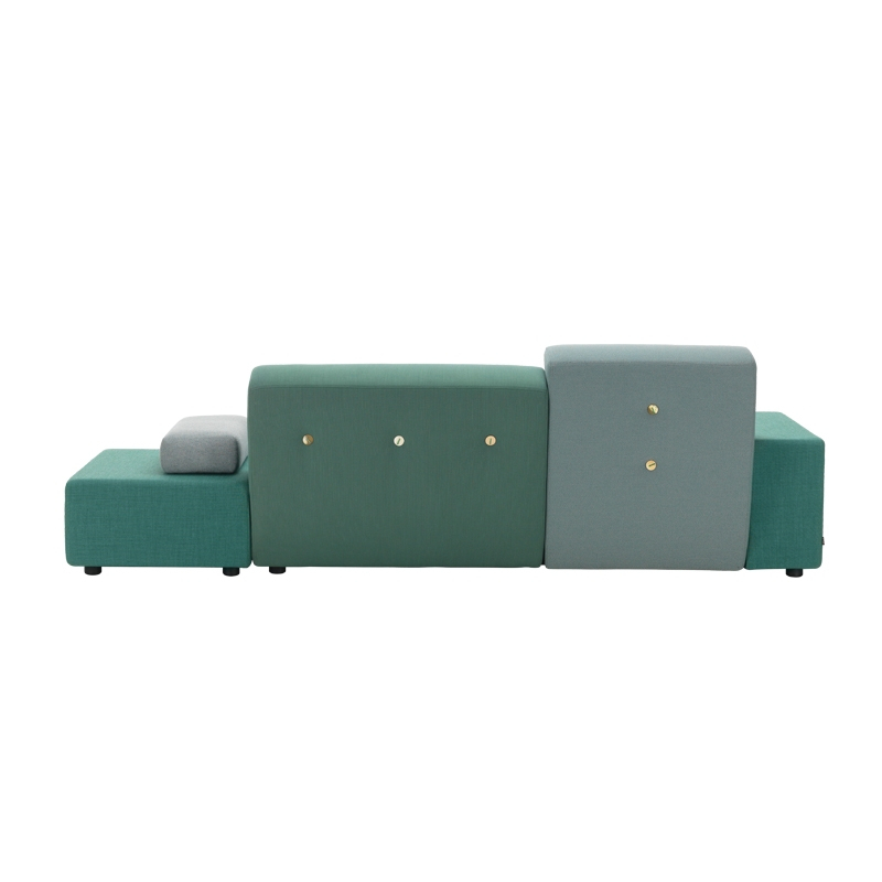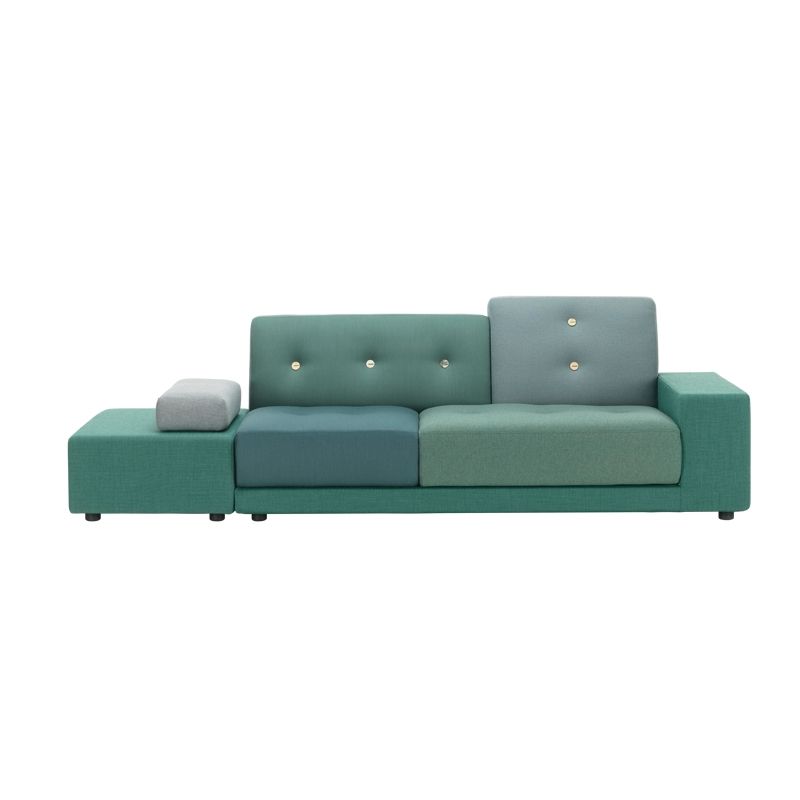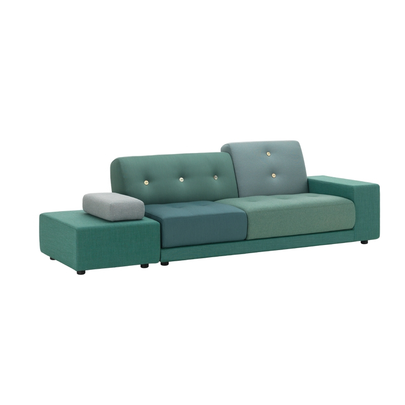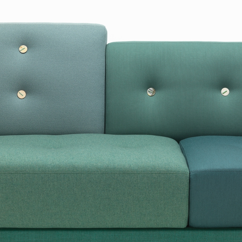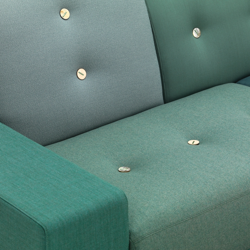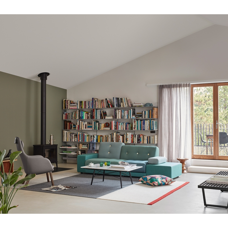 Dans le pays natal de la créatrice néerlandaise Hella Jongerius, un « polder » désigne l’étendue de terre, généralement subdivisée en champs pour l'agriculture, gagnée sur la mer grâce à la mise en place de digues et de fossés de drainage. Avec sa surface plane et son horizontalité prononcée qui évoque les caractéristiques de ce type de paysage, le Polder Sofa Vitra présente une forme asymétrique inhabituelle et une combinaison soigneusement élaborée de couleurs, de matériaux et de textures. Grâce à ces compositions de couleurs discrètes, le canapé Polder s‘adapte parfaitement à tous les intérieurs. Les boutons, clairs ou foncés, fabriqués dans des matériaux naturels, accentuent les couleurs du canapé. Le Polder Sofa est doté d’un accoudoir bas intégré d’un côté et d’une surface ouverte de l’autre côté, qui peut également servir de rangement pour des magazines, des livres ou des plateaux. Tous les revêtements du canapé Polder Vitra sont déhoussables.