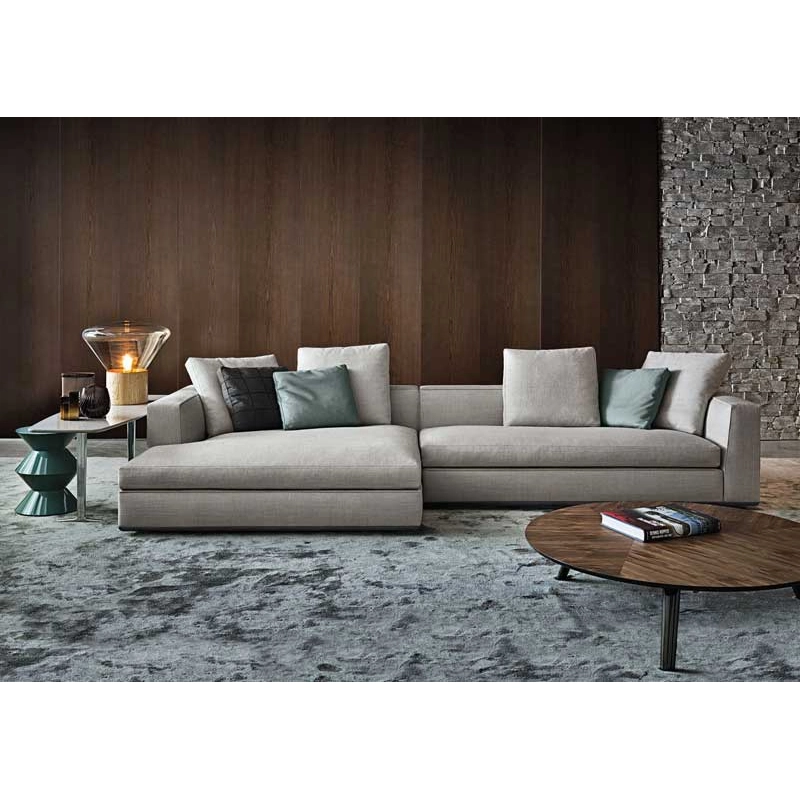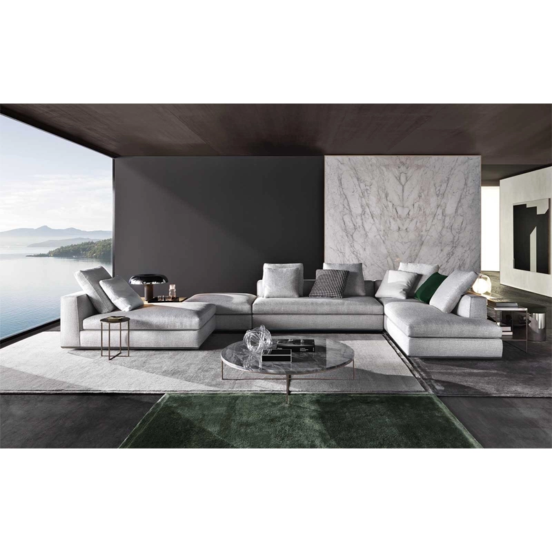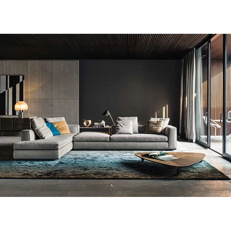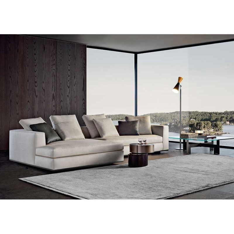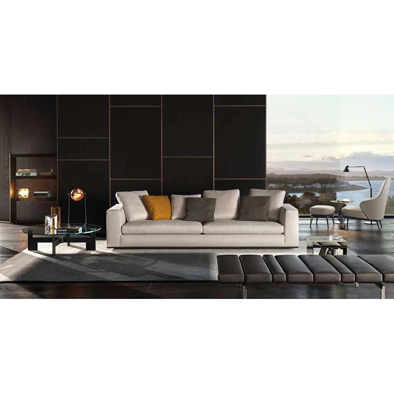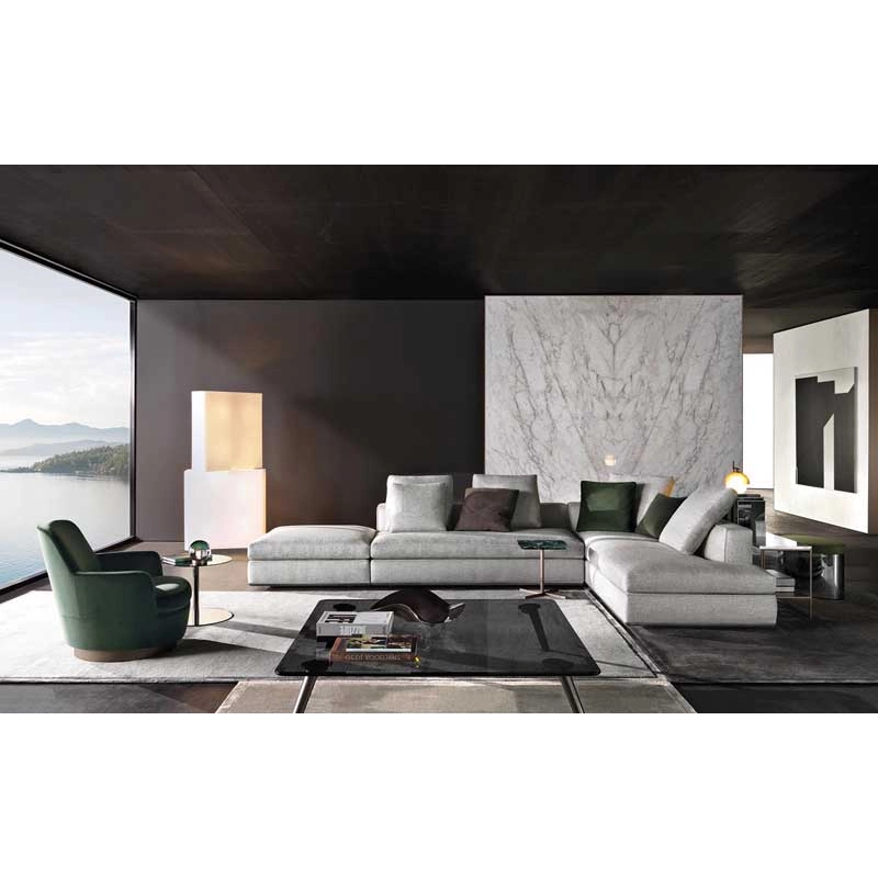 Powell, ou la quintessence du canapé contemporain selon Minotti : accueillant, raffiné et en même temps informel. Ce système de sièges comprend des canapés fixes et composables, conçus pour satisfaire une naturelle envie de relaxation. L’équilibre subtil des proportions, l’exercice de haute couture, chaque détail de Powell peut être rapporté à ce style qui appartient désormais à l’identité de la marque Minotti. La base en aluminium est un détail qui ne peut passer inaperçu surtout parce qu’elle est laquée dans une série de couleurs exclusives – Sable, Céladon, Prune, Granit et Étain – qui ouvrent à des possibilités d’associations chromatiques originales avec les tissus choisis pour le revêtement. Le canapé apparaît légèrement soulevé du sol, donnant la sensation d’être suspendu. L’élégance détendue du projet Powell s’exprime dans la simplicité de ses lignes et s’exalte dans sa confection méticuleuse, utilisant des rembourrages en plume d’oie tant pour le coussin unique de l’assise que pour ceux du dossier, avec un résultat de grand confort qui s’accommodera dans tous types d'intérieur.