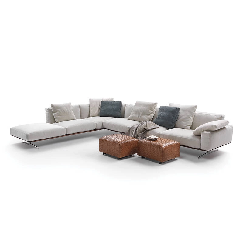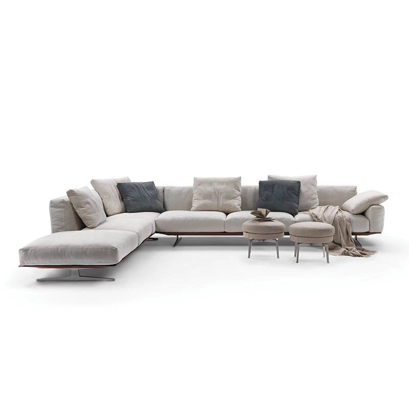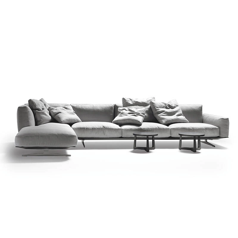 Dessiné par Antonio Citterio pour Flexform, Soft Dream est un canapé dont le but est de favoriser la dimension du rêve. Polyvalent, flexible, versatile sont les traits de personnalité du système de sièges Soft Dream. Léger, le canapé est surélevé du sol par d'élégants pieds en métal moulé sous pression, peints dans les couleurs gris et bronze, disponibles également en satiné, chromé, bruni, champagne et chrome noir. Le piètement en métal recouvert de cuir sellier accueille les moelleux coussins d'assise et de dossier, généreusement rembourrés en duvet d'oie. Les accoudoirs, disponibles en deux hauteurs, ainsi que la double profondeur (94 cm pour la version Soft Dream et 110 cm pour la version Soft Dream Large), font de Soft Dream un canapé flexible qui s'intègre facilement dans n’importe quel environnement. Contactez-nous pour plus d’informations.