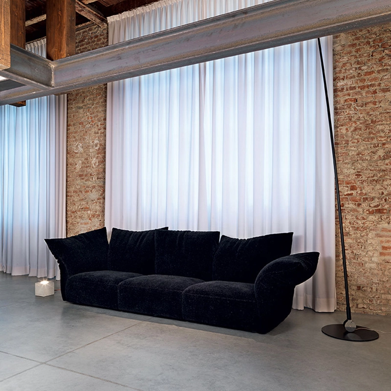 Standard de Edra, Francesco Binfaré revoit le concept de confort, multipliant les solutions possibles à travers différents éléments d’assise, qui peuvent être réguliers ou irréguliers ou profond, mais toujours associés à un coussin ajustable librement qui peut aussi bien servir de dossier ou d’accoudoir. Ce système offre une grande liberté, permettant de créer des combinaisons très variées que ce soient de compositions linaire ou d’angle. C’est une collection flexible qui s’adapte aux besoins de l‘utilisateur. Grâce aux coussins « intelligents », les accoudoirs et dossiers peuvent être inclinés individuellement dans n’importe quelle position pour un confort maximum. Élégant et accueillant,