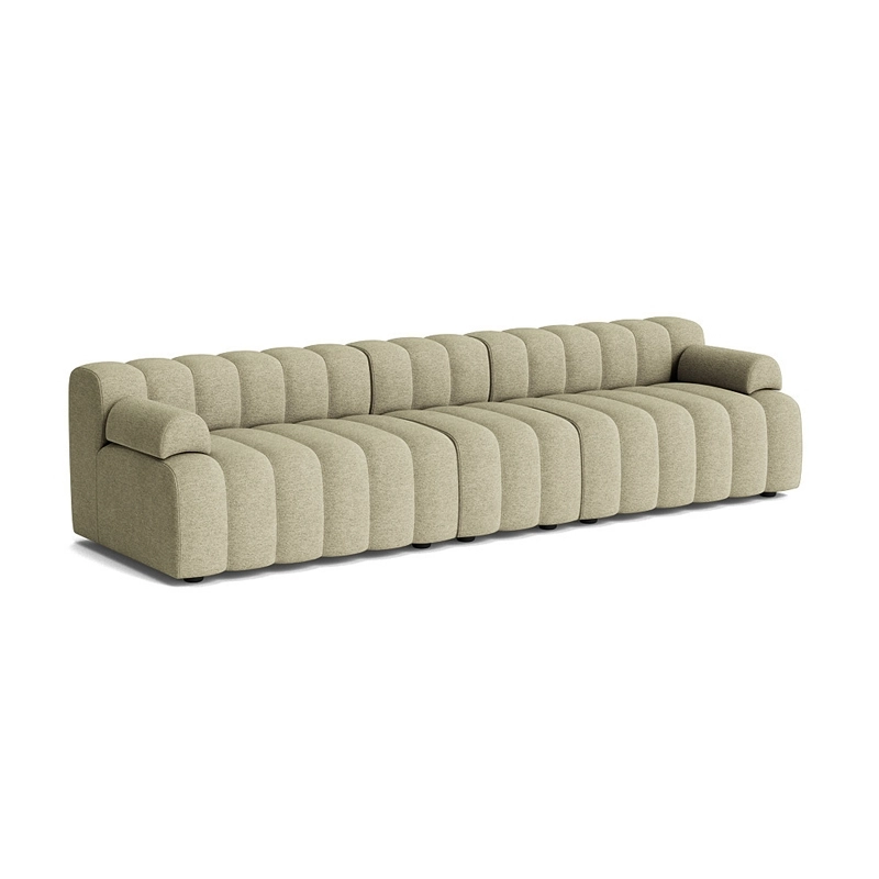 Le coussin d'accoudoir est indépendant et peut être déplacé et repositionné à travers la série, équilibrant le rembourrage cannelé.