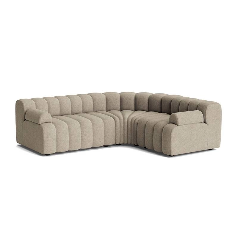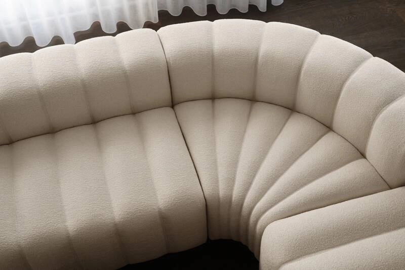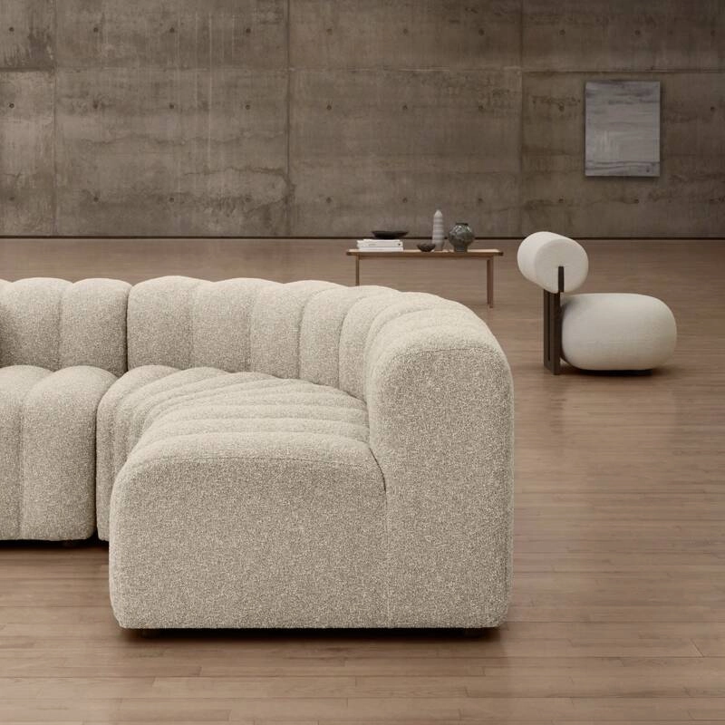 Le coussin d'accoudoir est indépendant et peut être déplacé et repositionné à travers la série, équilibrant le rembourrage cannelé.