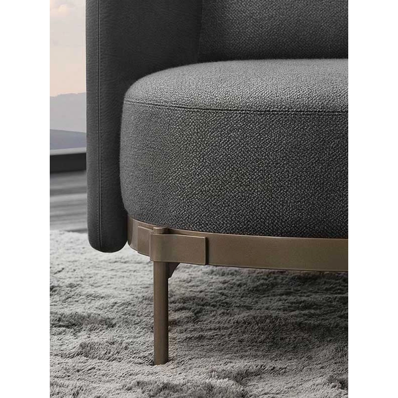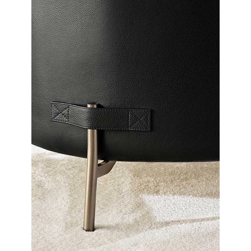Signé par Nendo - l’éclectique studio japonais dirigé par Oki Sato - Tape est une collection de sièges avec une forte personnalité caractérisée par une silhouette légère, déclinée dans une large gamme de produits : fauteuil avec ou sans accoudoirs, fauteuil lounge, bergère, canapé à deux ou trois places et pouf. Avec son approche fondamentalement ironique, le designer renverse l'idée traditionnelle des pieds sortant du siège, en les plaçant à l'extérieur de la structure. Tape doit son nom au détail haute couture des rubans tenant les pieds en métal de couleur Bronze Clair. Un hommage déclaré au savoir-faire de Minotti. La courbe douce de la coque, qui dessine l'accoudoir tout en logeant le coussin du dossier, confère à l'objet sa ligne pure et enveloppante. Personnalisable dans une large gamme de revêtements en cuir et en tissu, Tape présente deux combinaisons possibles: dans l’une, le tissu recouvre le dossier et le coussin du siège, tandis que la coque et la languette sont en cuir de la même couleur; dans l'autre, le textile enveloppe le dossier, le coussin du siège et l’ensemble de la coque, tandis que le détail du ruban est en cuir couleur Bronze Clair. Avec son identité formelle distinctive et ses proportions impeccables, Tape est le protagoniste de l'espace qui l'accueille, que ce soit à la maison ou dans un espace collectif.