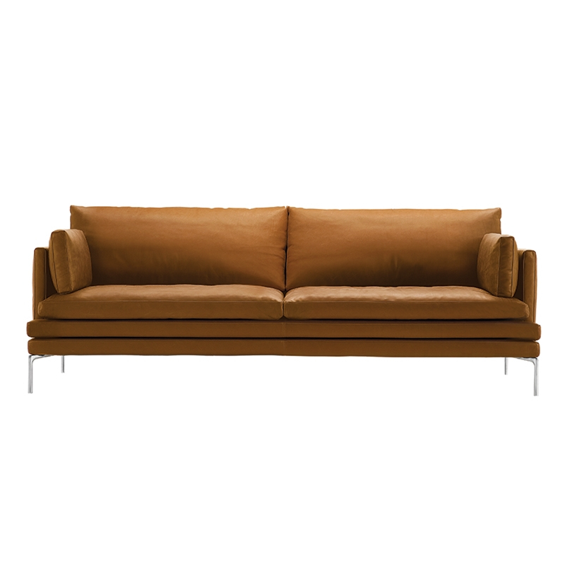 Dessiné en 2010 par Damian Williamson, le canapé William est devenu en peu de temps un classique de la marque Zanotta. Conçu pour durer, William allie confort exceptionnel et un design séduisant.  Avec ses lignes épurées et sa silhouette légère, ce canapé trouve sa place dans tous les intérieurs. William est doté d’un revêtement déhoussable en cuir ou en tissu et d’un piétement en acier. Le rembourrage de l’assise est en polyuréthane/fibre polyester liée à chaud. Le dossier et les accoudoirs sont en mousse de polyuréthane auto-extinguible/fibre polyester liée à chaud. Les coussins d’assise et de dossier sont rembourrés en plumes d’oie. Avec son large choix de dimensions et de finitions, William de Zanotta s’adapte à tous les salons contemporains.