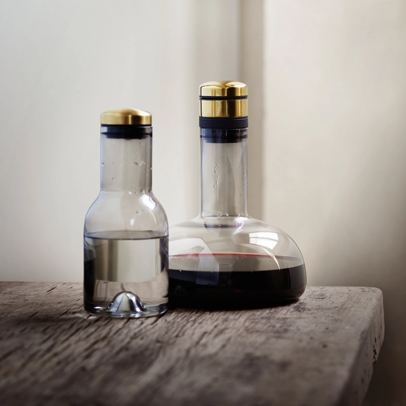 Le duo Norm Architects a imaginé  pour la marque Menu une carafe à décanter très fonctionnelle. Débouchez une bouteille de vin, installez la carafe sur le goulot et retournez-la : le vin s'écoulera dans le décanteur jusqu'au large fond de la carafe pour une aération parfaite. Grâce au goulot en silicone, la bouteille s'emboite parfaitement sans risque de fuir. Le vin peut ensuite être servi dans la carafe ou dans la bouteille d'origine en la retournant de nouveau. En moins de 2 minutes, le vin est parfaitement oxygéné pour une dégustation optimale. Un bel objet design à offrir aux amateurs de bonnes bouteilles.