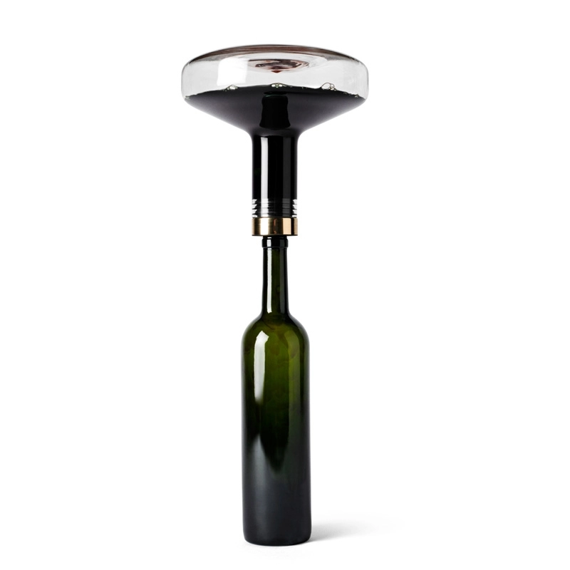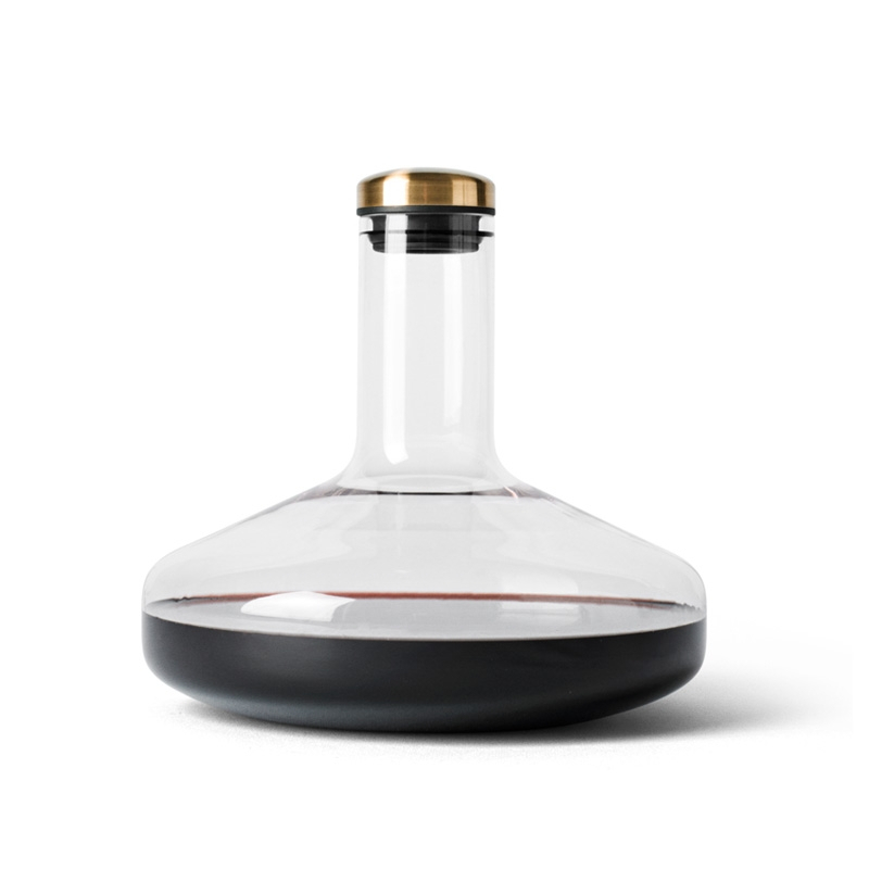 Cette carafe à vin est la version Deluxe du célèbre Wine Breather créé par le duo Norm Architects pour Menu. Plus grande et dotée d'une bouchon en laiton, cette nouvelle version est tout aussi pratique. Débouchez une bouteille de vin, installez la carafe sur le goulot et retournez-la : le vin s'écoulera dans le décanteur jusqu'au large fond de la carafe pour une aération parfaite. Grâce au goulot en silicone, la bouteille s'emboite parfaitement sans risque de fuir. Le vin peut ensuite être servi dans la carafe ou dans la bouteille d'origine en la retournant de nouveau. En moins de 2 minutes, le vin est parfaitement oxygéné pour une dégustation optimale. Un bel objet design à offrir aux amateurs de bonnes bouteilles.