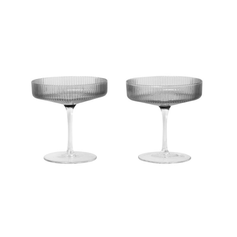 Carafe & verre Set de 2 coupes à Champagne RIPPLE Gris fumé FERM LIVING