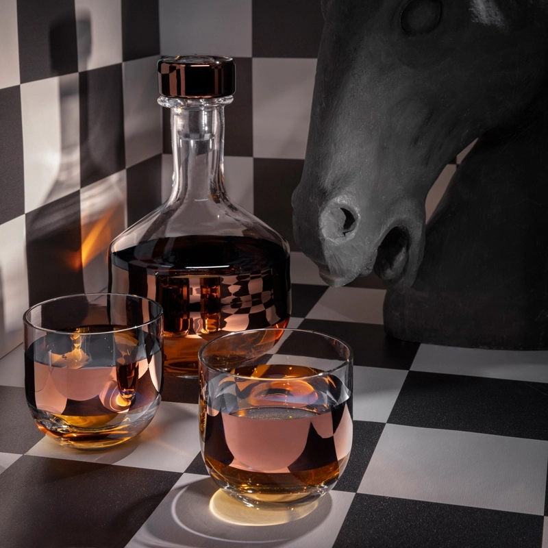 Créée par Tom Dixon, Tank est une collection d'accessoires pour la table qui allie parfaitement esthétique contemporaine et techniques traditionnelles. Les verres à whisky Tank sont réalisés en verre soufflé à la bouche et les détails cuivrés sont peints à la main. Présenté dans une belle boîte cadeau, ce set de deux verres apporte une touche d'élégance au moment de l'apéritif. Une idée de cadeau parfaite pour les amateurs de whisky.