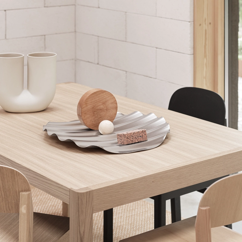 Le centre de table Wave Tray, dessiné par le duo Cara/Davide, apporte une sensation raffinée à la matérialité autrement brute du métal. A travers ses formes organiques modelées dans l’acier inoxydable, cet accessoire sculptural évoque les ondulations d’une vague. Edité par Muuto, le centre de table Wave Tray est doté d’une expression à la fois simple et graphique qui, alliée avec ses larges proportions, s’impose en pièce maitresse dans tous les intérieurs.