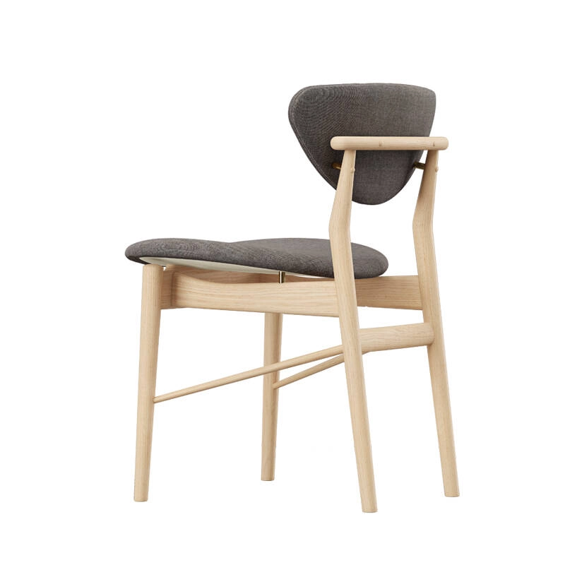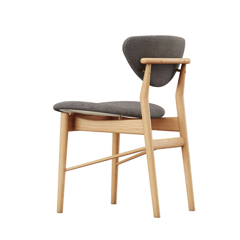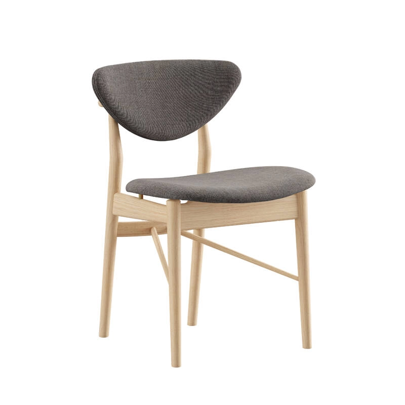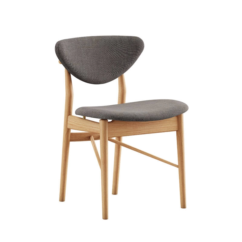 La chaise 108 a été dessinée par Finn Juhl en 1946. En surface, elle ressemble à une chaise ordinaire. Mais après un examen plus poussé, des détails surprenant, comme les barres latérales inclinées, sont révélés. Ces détails apportent un mouvement inattendu et une dynamique à l’ensemble.  A ce jour, les créations de Finn Juhl sont toujours étonnantes et défient les attentes avec des détails subtils. La philosophie de Finn Juhl consistant à séparer les éléments portés et porteurs, créant ainsi de l'espace, est très visible dans la chaise 108. Bien qu’elle soit rembourrée et très confortable, la chaise 108 parvient à garder sa légèreté et sa beauté sous tous les angles.  Fabriquée en chêne ou noyer avec un revêtement en cuir ou en tissu, la chaise 108 s’intègre magnifiquement dans toutes les salles à manger, apportant une touche sophistiquée.