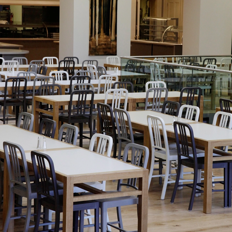 La société américaine de meubles Emeco a été fondée en 1944 pour fabriquer des chaises légères, non corrosives, résistantes au feu et anti-torpilles pour l’US Navy. La classique 1006 Navy Chair est née de cette fabrication, faite pour durer au moins cent cinquante ans, légère, intelligente, fonctionnelle et solide – parce que «c’était le meilleur que nous pouvions faire». Aujourd’hui, les artisans d’Emeco, situés à Hanover, en Pennsylvanie, continuent de fabriquer des chaises qui sont si résistantes qu’elles se transmettent de génération en génération – Emeco définit ainsi le concept de durabilité. Emeco mène l’industrie, explore et innove et les déchets industriels.