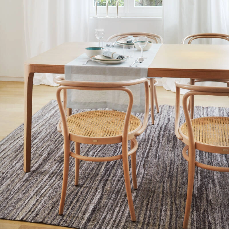 Thonet, cet élégant classique en bois courbé est un chef-d’œuvre en termes de conception et de fabrication : le dossier et les accoudoirs sont formés d’un unique cadre en porte-à-faux courbé, fabriqué d’une seule pièce de hêtre massif. Comme l’original en bois courbé n° 214, conçu par les frères