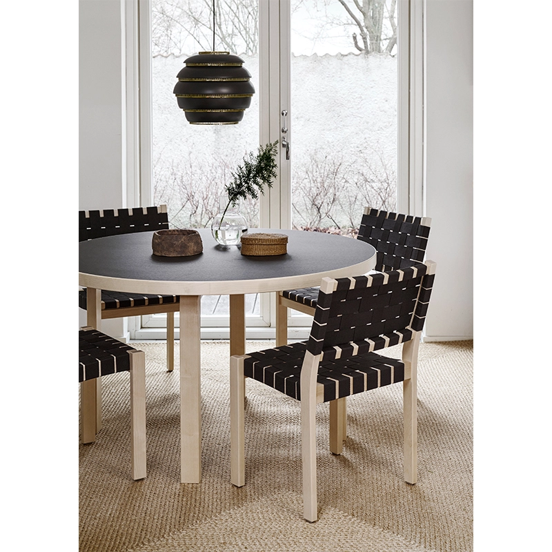 La chaise 611 rassemble une structure en bouleau massif avec une assise et un dossier fait de sangles en lin tressées. Conçue pour offrir confort et praticité, la sangle s'adapte à la personne assise, rendant la chaise exceptionnellement confortable. La chaise 611 peut être facilement retapissée, ce qui signifie que la chaise peut avoir plusieurs cycles de vie. L'une des premières conceptions de meubles modernes d'Alvar Aalto, la chaise 611 est en production continue depuis sa création. S'adaptant à presque tous les environnements, la chaise 611, éditée par Artek, s'empile jusqu'à cinq chaises.