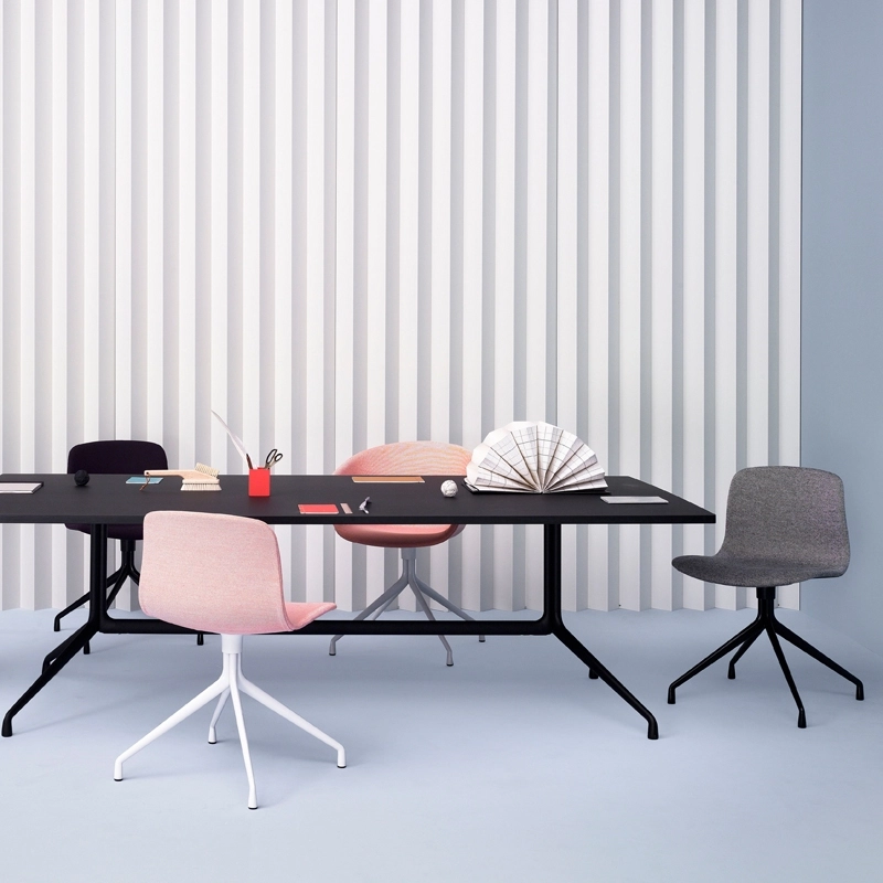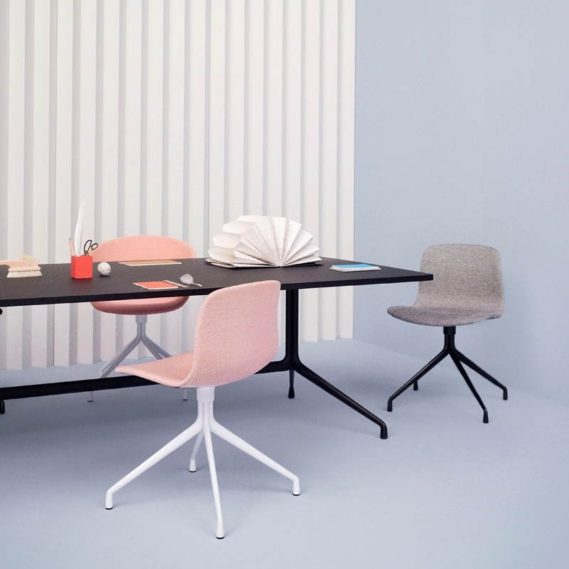 L'idée derrière la collection About A Chair, dessinée par Hee Welling, est de développer une chaise dotée d'une simplicité évidente. Un design sobre et épuré pour cette chaise qui fonctionne aussi bien autour d'une table de salle à manger qu'une table de conférence, dans une cantine ou dans un bureau. L'ambition du designer est de combiner à la fois la forme, la fonction, le détail et l'esthétique. La maison danoise Hay édite cette collection qui présente une large gamme de couleurs et de structures. Ici, la coque en polypropylène s'associe à plusieurs bases : piètement luge, pied central ou piètement bois. Disponible en version chaise ou petit fauteuil, About A Chair assure un confort optimal grâce à sa coque enveloppante à la forme ergonomique. Une chaise qui symbolise parfaitement la pureté, la sobriété et le style intemporel du design scandinave.