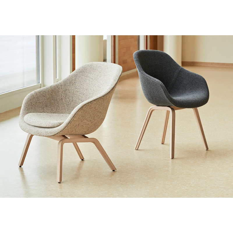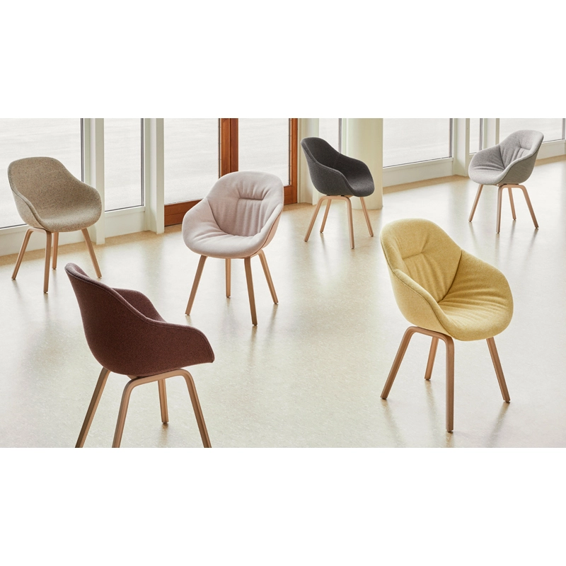 AAC 123 se caractérise par une base robuste avec des pieds légèrement inclinés vers l'extérieur pour une stabilité optimale. La coque, dotée d’un dossier haut et d’une assise généreuse est disponible dans une variété d'options de rembourrage, offrant une multitude de combinaisons de design, pour s’adapter à vos envies.
