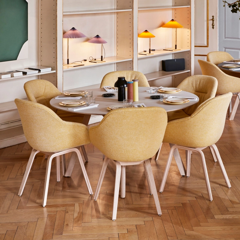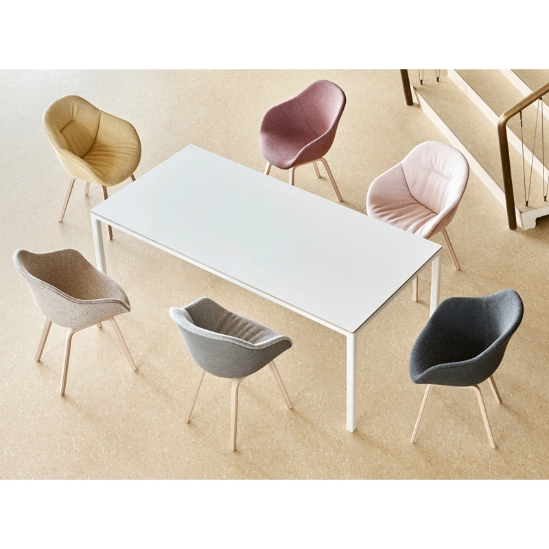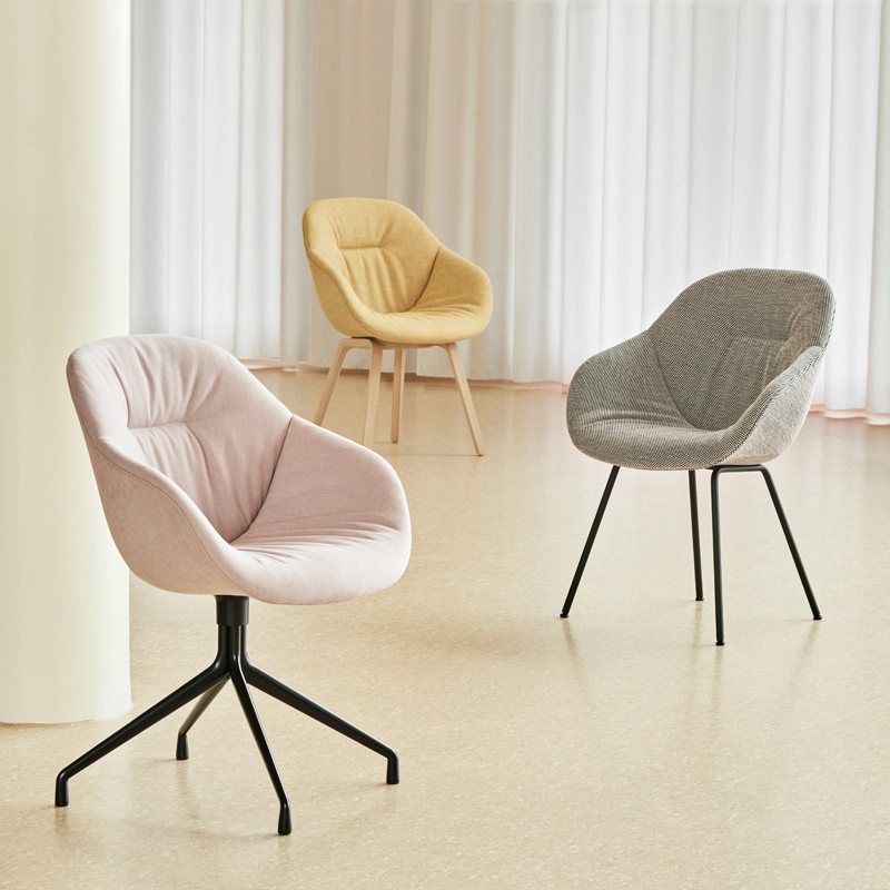 L'idée derrière la collection About A Chair, dessinée par Hee Welling, est de développer une chaise dotée d'une simplicité évidente. Un design sobre et épuré pour cette chaise qui fonctionne aussi bien autour d'une table de salle à manger, une table de conférence ou dans un bureau. L'ambition du designer est de combiner à la fois la forme, la fonction, le détail et l'esthétique. La maison danoise Hay édite cette collection qui présente une large gamme de couleurs et de structures. Intemporelle et organique, la chaise AAC 123 se caractérise par une base robuste avec des pieds légèrement inclinés vers l'extérieur pour une stabilité optimale. La coque, dotée d’un dossier haut et d’une assise généreuse est disponible dans une variété d'options de rembourrage, offrant une multitude de combinaisons de design, pour s’adapter à vos envies.