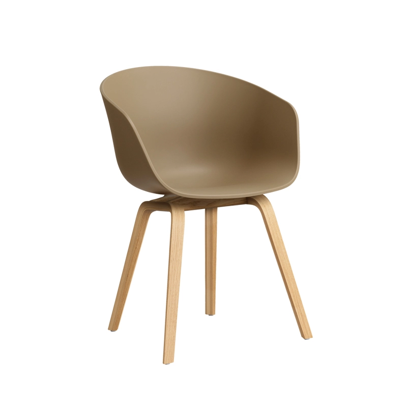 L'idée derrière la collection About A Chair, dessinée par Hee Welling, est de développer une chaise dotée d'une simplicité évidente. Un design sobre et épuré pour cette chaise qui fonctionne aussi bien autour d'une table de salle à manger qu'une table de conférence, dans une cantine ou dans un bureau. L'ambition du designer est de combiner à la fois la forme, la fonction, le détail et l'esthétique. La maison danoise Hay édite cette collection qui présente une large gamme de couleurs et de structures. Ici, la coque en polypropylène repose sur un piètement en bois. Disponible en version chaise ou petit fauteuil, About A Chair assure un confort optimal grâce à sa coque enveloppante à la forme ergonomique. Une chaise qui symbolise parfaitement la pureté, la sobriété et le style intemporel du design scandinave.