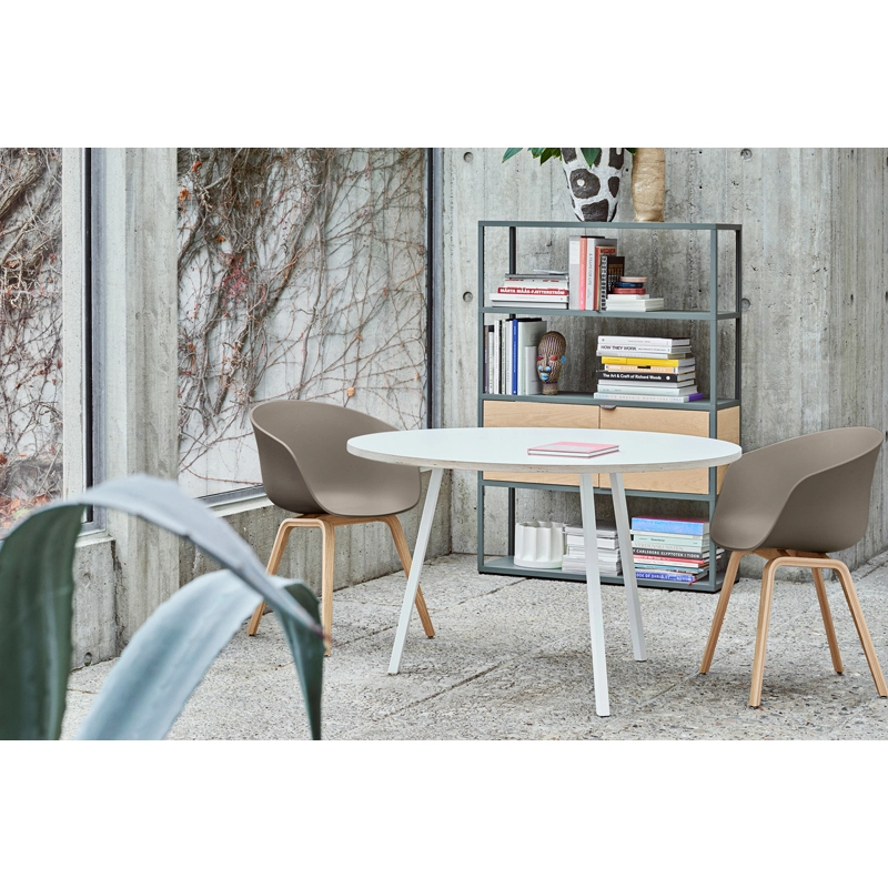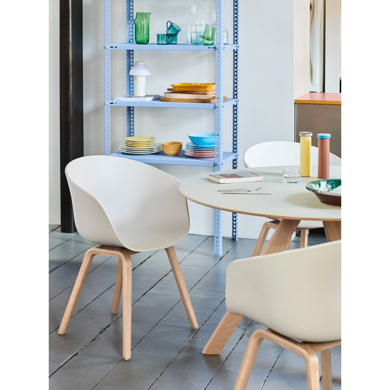 L'idée derrière la collection About A Chair, dessinée par Hee Welling, est de développer une chaise dotée d'une simplicité évidente. Un design sobre et épuré pour cette chaise qui fonctionne aussi bien autour d'une table de salle à manger qu'une table de conférence, dans une cantine ou dans un bureau. L'ambition du designer est de combiner à la fois la forme, la fonction, le détail et l'esthétique. La maison danoise Hay édite cette collection qui présente une large gamme de couleurs et de structures. Ici, la coque en polypropylène repose sur un piètement en bois. Disponible en version chaise ou petit fauteuil, About A Chair assure un confort optimal grâce à sa coque enveloppante à la forme ergonomique. Une chaise qui symbolise parfaitement la pureté, la sobriété et le style intemporel du design scandinave.