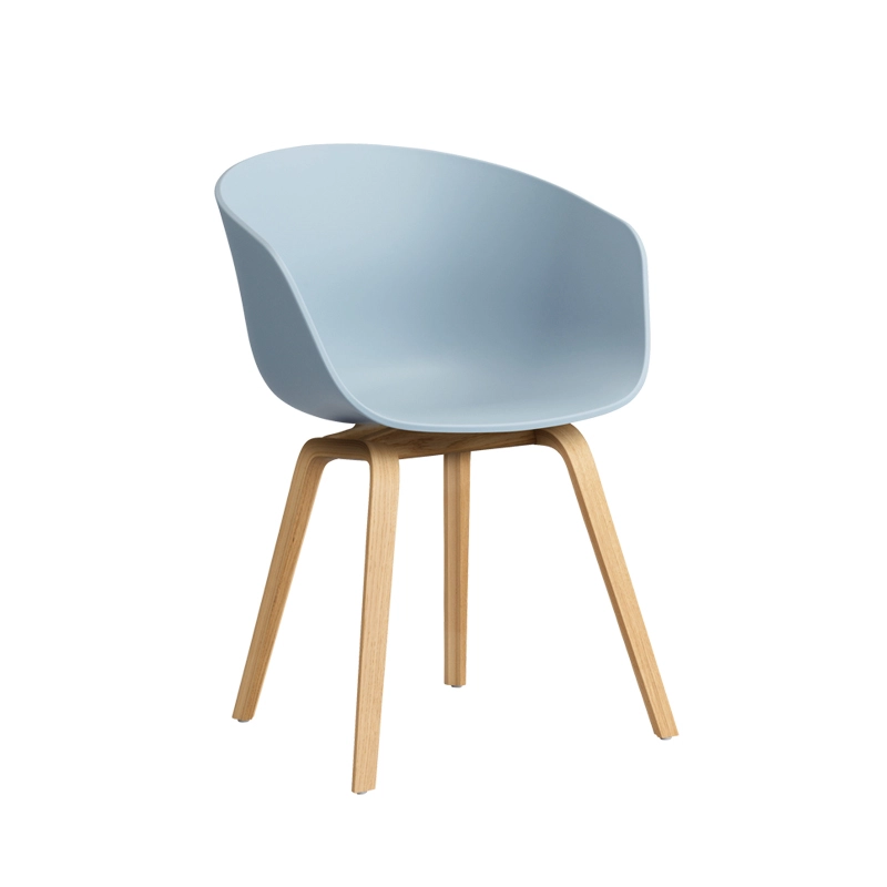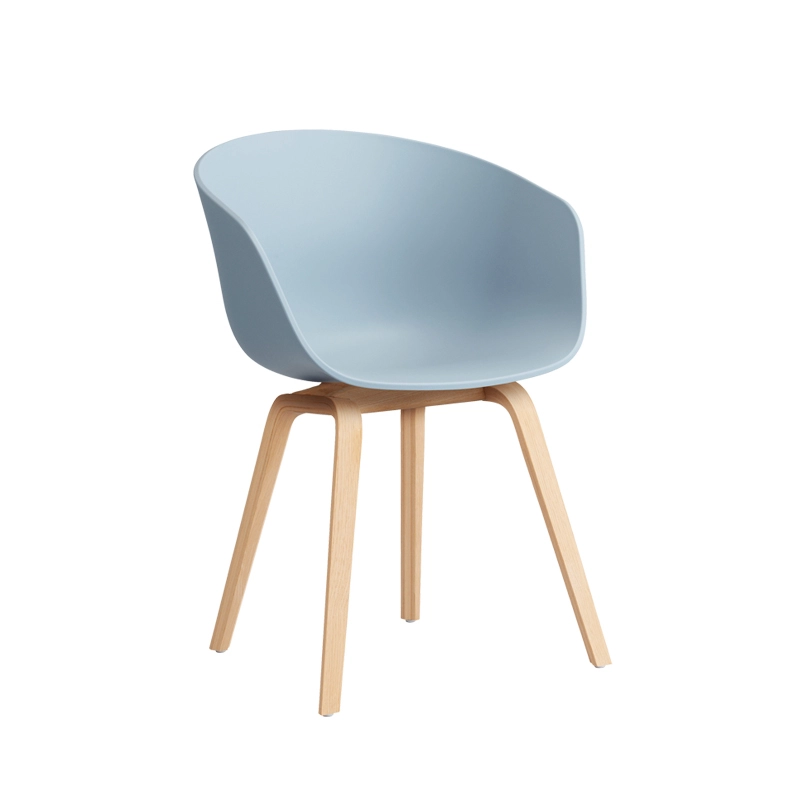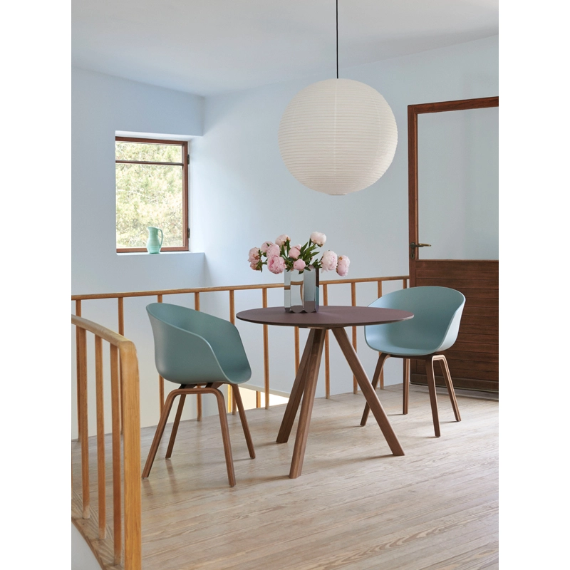 L'idée derrière la collection About A Chair, dessinée par Hee Welling, est de développer une chaise dotée d'une simplicité évidente. Un design sobre et épuré pour cette chaise qui fonctionne aussi bien autour d'une table de salle à manger qu'une table de conférence, dans une cantine ou dans un bureau. L'ambition du designer est de combiner à la fois la forme, la fonction, le détail et l'esthétique. La maison danoise Hay édite cette collection qui présente une large gamme de couleurs et de structures. Ici, la coque en polypropylène repose sur un piètement en bois. Disponible en version chaise ou petit fauteuil, About A Chair assure un confort optimal grâce à sa coque enveloppante à la forme ergonomique. Une chaise qui symbolise parfaitement la pureté, la sobriété et le style intemporel du design scandinave.