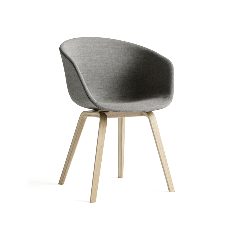 L'idée derrière la collection About A Chair, dessinée par Hee Welling, est de développer une chaise dotée d'une simplicité évidente. Un design sobre et épuré pour cette chaise qui fonctionne aussi bien autour d'une table de salle à manger qu'une table de conférence, dans une cantine ou dans un bureau. L'ambition du designer est de combiner à la fois la forme, la fonction, le détail et l'esthétique. La maison danoise Hay édite cette collection qui présente une large gamme de couleurs et de structures. Ici, la coque en polypropylène repose sur un piètement en bois. Disponible en version chaise ou petit fauteuil, About A Chair assure un confort optimal grâce à sa coque enveloppante à la forme ergonomique. Une chaise qui symbolise parfaitement la pureté, la sobriété et le style intemporel du design scandinave.