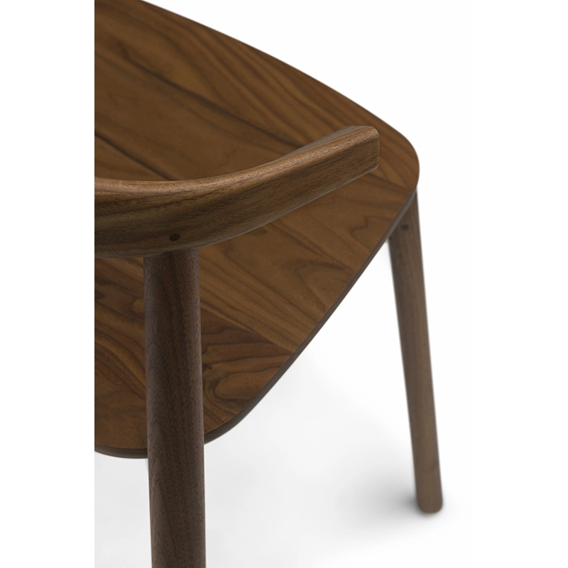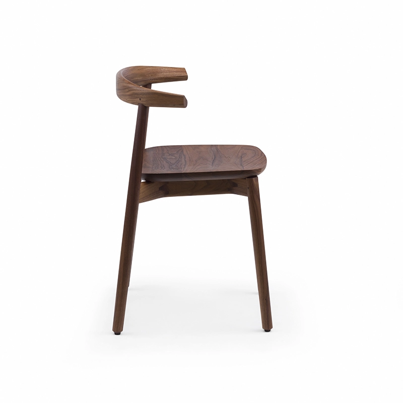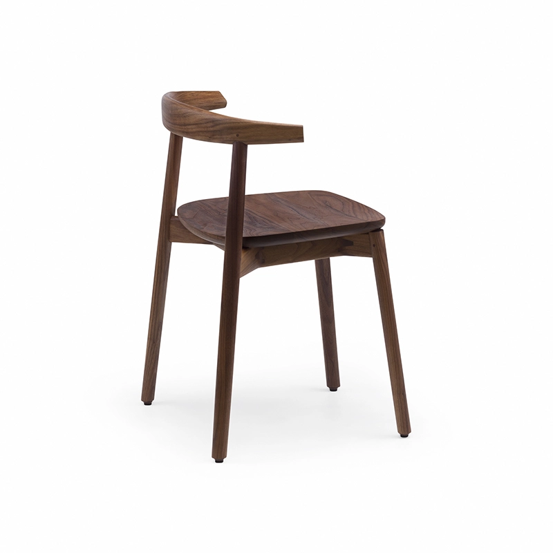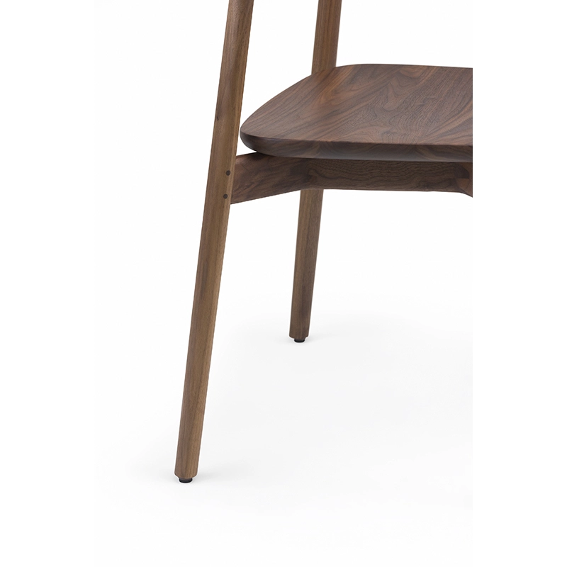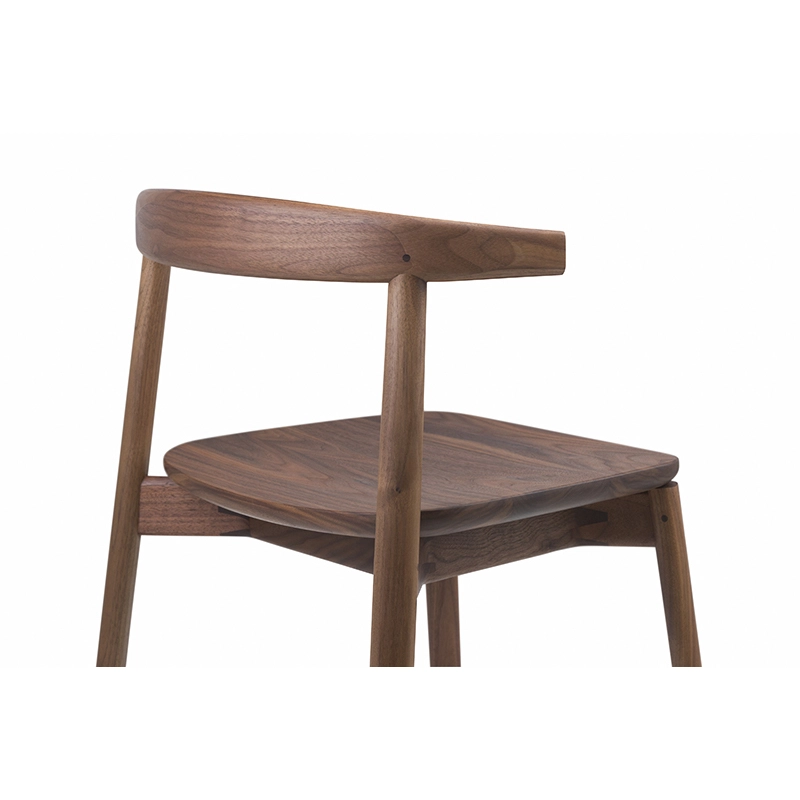 La chaise Ando de De La Espada est une conception utilitaire, robuste et silencieuse avec de beaux détails. C'est une chaise de salle à manger relativement compacte avec de la force et de la personnalité tout en restant sobre. Le dos de la chaise Ando est composé de plusieurs pièces de bois, jointes et sculptées, mettant en valeur les variations naturelles du grain du matériau.
