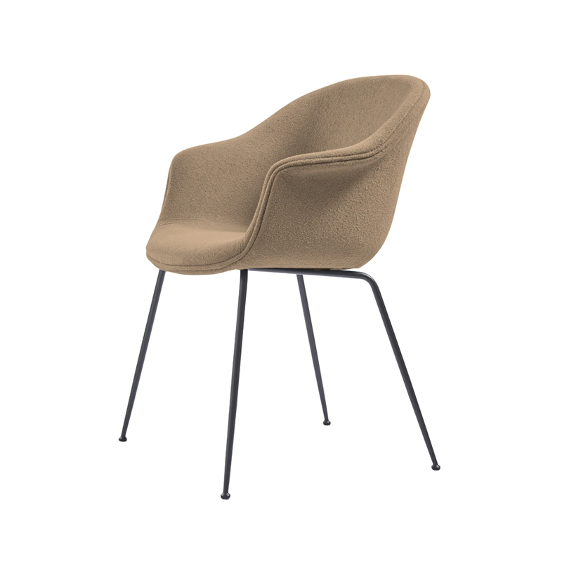 La chaise Bat fait référence aux caractéristiques des chauves-souris, avec sa coque attrayante et distinctive qui rappelle la forme de l'envergure d'une chauve-souris. Conçue par le duo de designers italo-danois GamFratesi pour Gubi, la chaise Bat a été créée avec une approche scandinave, trouvant son équilibre entre traditionnel et surprenant. Avec une histoire forte et des associations inspirées du minimalisme, le design de la Bat Dining Chair est tout aussi simple que fonctionnel. La vaste gamme d'options de coques et de bases de différentes teintes et finitions rend la chaise de salle à manger Bat parfaitement adaptable à une variété de contextes publics et privés. Dans cette version, le tissu Light Bouclé ajoute une touche chaleureuse à toutes les salles à manger.