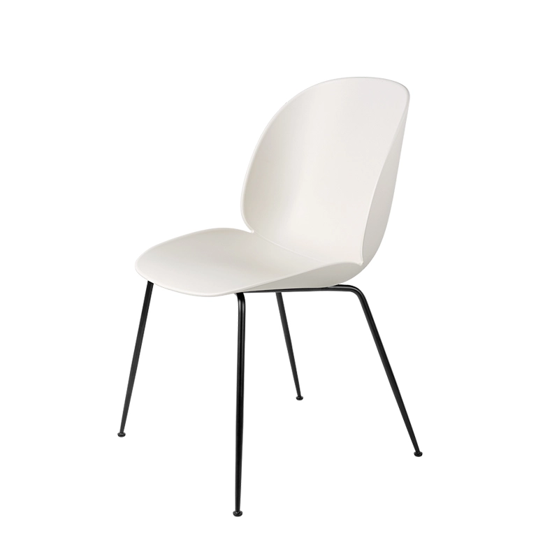 Pour la collection Beetle, la danoise Stine Gam et l’italien Enrico Fratesti se sont inspirés du scarabée, en étudiant l’anatomie, l’esthétique et le mouvement de l’insecte. La chaise Beetle a rencontré son public dès son introduction en 2013 et est devenue depuis le plus grand succès commercial de Gubi. Ainsi la collection réinterprète les éléments caractéristiques du scarabée que ce soit par la forme, les jointures, l’aspect rigide à l’extérieur et souple à l’intérieur.  La chaise Beetle est un mélange entre le design classique italien et les traditions scandinaves. Les créations du studio jouent souvent ave l’héritage du design classique danois, mais aussi avec la nature et plus particulièrement le monde des insectes, puisque la Beetle leur a été inspirée par la carapace des scarabées. Désormais disponible en version non rembourrée, la chaise Beetle est devenue une collection aux possibilités illimitées. Sa coque en plastique lui donne une allure plus légère tout en étant très robuste et plus accessible. Sa texture matte, qui lui donne un côté très tactile, est combinée à une qualité d’assise exceptionnelle. L’assise et le dossier sont donc constitués de deux coques aux lignes incurvées qui reproduisent la carapace de l’insecte. Les pattes de l’animal sont représentées par les pieds fins et fuselés en acier laiton. Les différents éléments de la chaise Beetle sont liés et travaillés d’une manière fluide. Grâce aux multiples couleurs de coques et finitions de piètements disponibles, la chaise Beetle non rembourrée de Gubi s’intègre dans tous types d’espaces, que ce soit à la maison autour d’une table de repas que dans des environnements collectifs. Son design attrayant, son confort exceptionnel et ses vastes possibilités de personnalisation ont séduit les particulier et les architectes d’intérieur et l’on peut la voir aujourd’hui dans de nombreux restaurants parmi les plus renommés du monde.