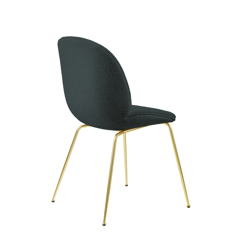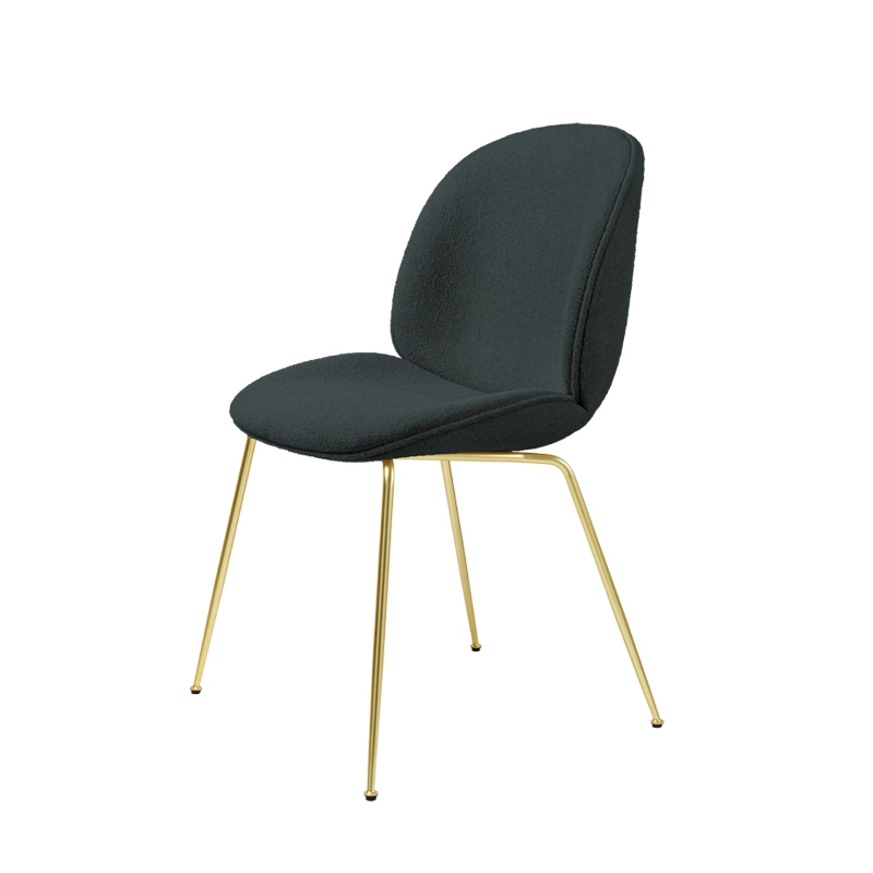 Beetle est une série de chaises éditées par Gubi et inspirées par la forme du scarabée. Le siège et le dossier sont réalisés en contreplaqué moulé, recouverts de tissu et rembourrés pour assurer un confort optimal. Les pieds, de forme légèrement conique, sont en acier recouvert à l'époxy noir ou en laiton. L'élégance de la forme du siège Beetle est soulignée par un passepoil en cuir. Les créations du studio GamFratesi incarnent l'union du design italien avec la sobriété danoise. Les contrastes sont souvent la clé de l'inspiration de ce duo qui travaille avec une approche artisanale purement scandinave, simple et fonctionnelle, mais toujours avec un concept et une histoire forte, intégrés dans chacune de leur création.