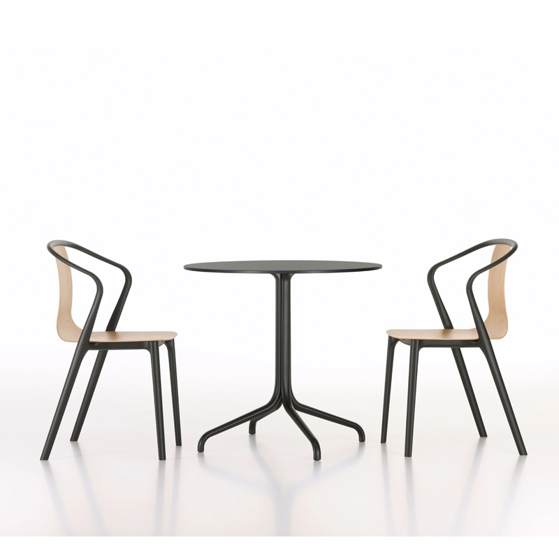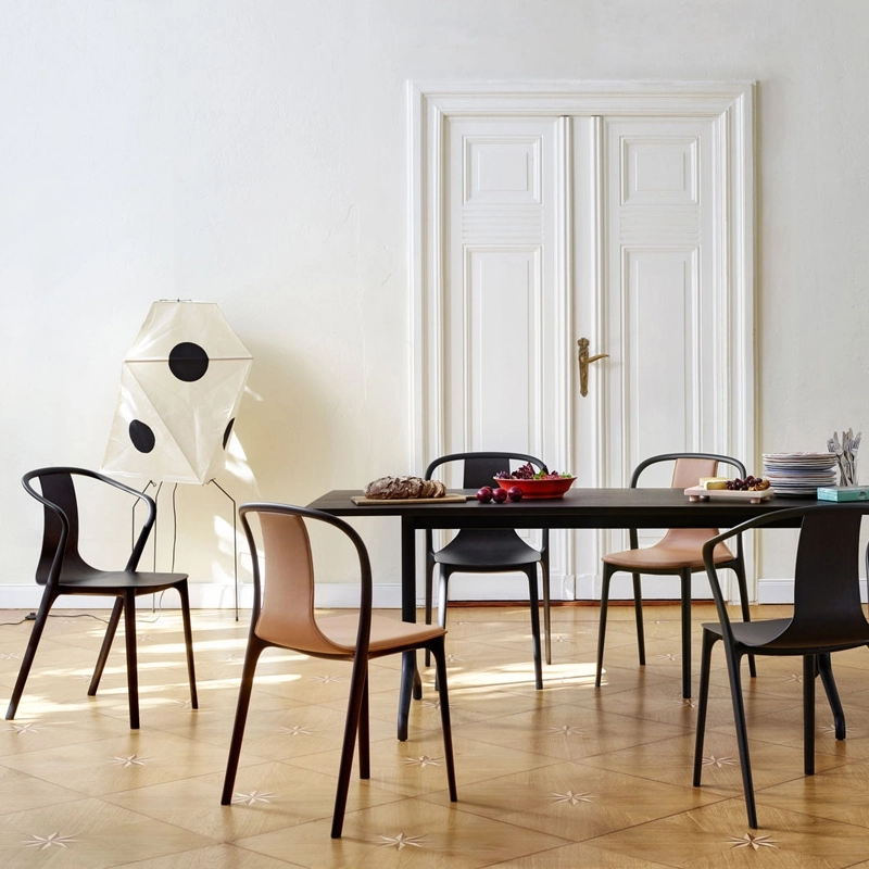 Inspirée par le mobilier de bistrot classique, la collection Belleville tient son nom du quartier parisien dans lequel se trouve le studio des designers Ronan et Erwan Bouroullec. La série se compose de chaises et de tables contemporaines à l'allure dynamique et raffinée, tout en étant empreintes d'une certaine tradition. La chaise, disponible avec ou sans accoudoirs, est composée de deux éléments : une coque en polypropylène ou en contreplaqué, qui vient se fixer sur une structure porteuse en polyamide. Avec sa silhouette élancée et sa composition robuste, la chaise Belleville, éditée par Vitra, s'intègre aussi bien dans un espace domestique - une cuisine ou une salle à manger - , que dans un lieu public, comme un restaurant. La version plastique convient aussi à un usage extérieur.