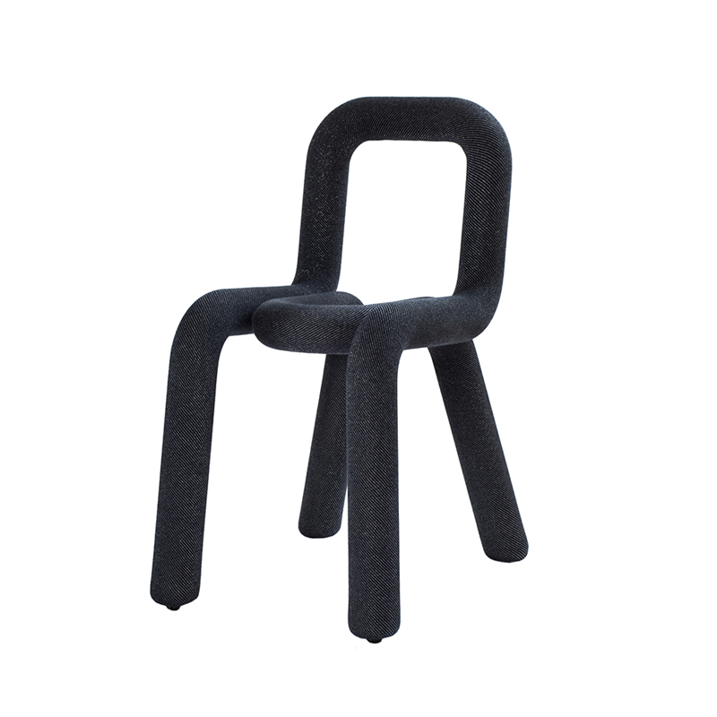 Bold est une chaise hors du commun dessinée par Big-Game pour l'éditeur Moustache. Ludique et très graphique, cette chaise est composée de deux parties tubulaires en métal imbriquées l'une dans l'autre. Elle réactualise ainsi la tradition du siège en tube d'acier. En effet, le but de cette collection est de transformer des éléments basiques pour y apporter un « plus » tout en préservant l’intégrité de l’élément de départ. La structure tubulaire en métal à l’origine de la traditionnelle chaise en métal, est épaissie par un effet de rembourrage en mousse. Gonflée d'une épaisse mousse de polyuréthane, la ligne tracée par la Bold joue le rôle à la fois de pieds, de siège puis de dossier et lui apporte un confort étonnant. La chaise Bold est faite d’un seul trait à la manière de la Linea d’Osvaldo Cavandoli et épaissie telle la police de caractère à laquelle on applique une graisse. Ainsi, la chaise Bold réussit à faire l'économie de siège et de dossier et tel était l'objectif affiché des designers Big-Game : « transformer des éléments basiques pour y apporter un "plus" tout en préservant l'intégrité de l'élément de départ ». Tout superflu est éliminé pour ne garder que l’essentiel. La chaise Bold trouve sa place dans de nombreuses collections comme au MoMA, à New York, le Musée des Arts Décoratifs, à Paris, ou encore le Museum für Gestaltung à Zurich. Ultra graphique, la chaise Bold ne passe pas inaperçue. Cette chaise surprenante et fantaisiste est recouverte d'un gainage de textile déhoussable et lavable pouvant changer de coloris en quelques instants. Avec son aspect coloré et ludique, la chaise Bold ajoute une touche pimentée et étonnante dans les intérieurs. A exposer dans une chambre d'enfant ou comme fauteuil de bureau pour avoir du confort tout en obtenant un graphisme étonnant.