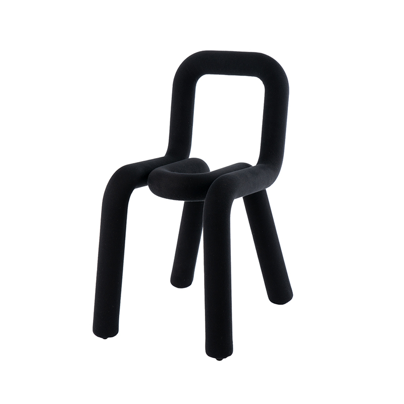 Bold est une chaise hors du commun dessinée par Big-Game pour l'éditeur Moustache. Ludique et très graphique, cette chaise est composée de deux parties tubulaires en métal imbriquées l'une dans l'autre. Elle réactualise ainsi la tradition du siège en tube d'acier. En effet, le but de cette collection est de transformer des éléments basiques pour y apporter un « plus » tout en préservant l’intégrité de l’élément de départ. La structure tubulaire en métal à l’origine de la traditionnelle chaise en métal, est épaissie par un effet de rembourrage en mousse. Gonflée d'une épaisse mousse de polyuréthane, la ligne tracée par la Bold joue le rôle à la fois de pieds, de siège puis de dossier et lui apporte un confort étonnant. La chaise Bold est faite d’un seul trait à la manière de la Linea d’Osvaldo Cavandoli et épaissie telle la police de caractère à laquelle on applique une graisse. Ainsi, la chaise Bold réussit à faire l'économie de siège et de dossier et tel était l'objectif affiché des designers Big-Game : « transformer des éléments basiques pour y apporter un "plus" tout en préservant l'intégrité de l'élément de départ ». Tout superflu est éliminé pour ne garder que l’essentiel. La chaise Bold trouve sa place dans de nombreuses collections comme au MoMA, à New York, le Musée des Arts Décoratifs, à Paris, ou encore le Museum für Gestaltung à Zurich. Ultra graphique, la chaise Bold ne passe pas inaperçue. Cette chaise surprenante et fantaisiste est recouverte d'un gainage de textile déhoussable et lavable pouvant changer de coloris en quelques instants. Avec son aspect coloré et ludique, la chaise Bold ajoute une touche pimentée et étonnante dans les intérieurs. A exposer dans une chambre d'enfant ou comme fauteuil de bureau pour avoir du confort tout en obtenant un graphisme étonnant.