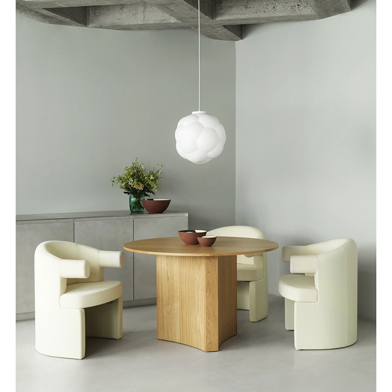 Imaginé par le designer Simon Legald pour Normann Copenhagen, la collection Burra propose des fauteuils et des petits fauteuils rembourrés au design visuellement distinctif. Inspiré de la forme de la burrata italienne, le design de la collection Burra met l'accent sur la douceur, avec des lignes arrondies et organiques qui se fondent harmonieusement. Le dossier incurvé déploie naturellement les accoudoirs, ajoutant à la fois une dimension esthétique et fonctionnelle. Le petit fauteuil Burra est entièrement rembourré et est fabriqué à partir de placage moulé recouvert de mousse pour un confort optimal. Grâce à leur rembourrage généreux et leur silhouette organique, le fauteuil et le petit fauteuil Burra édités par Normann Copenhagen ajouteront une touche d'élégance artistique à tout style de pièce de vie.