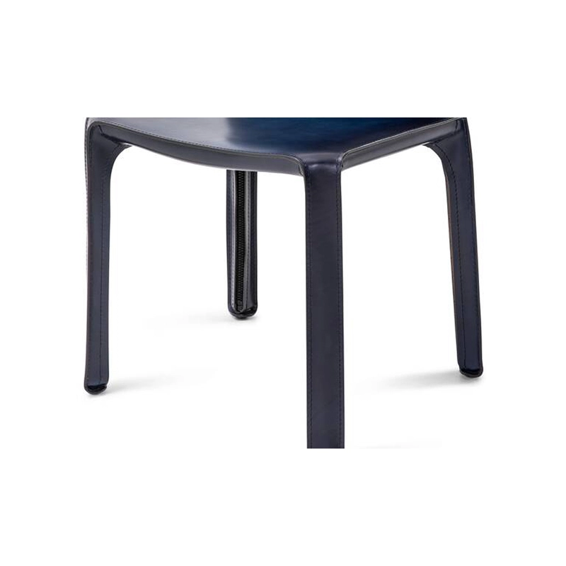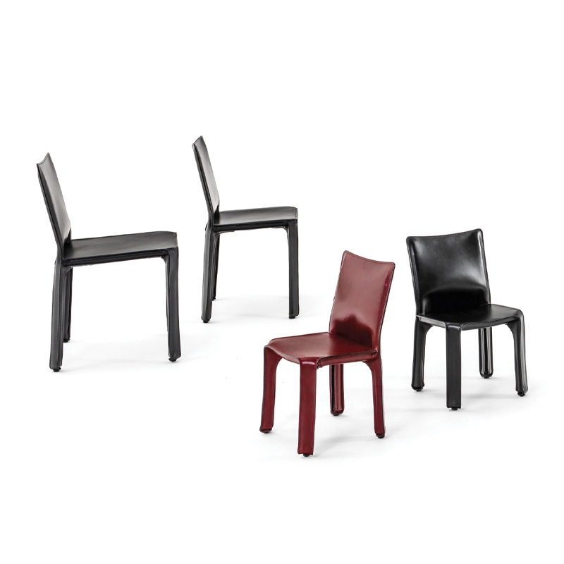 Conçue par Mario Bellini et éditée par Cassina, la chaise Cab 412 incarne un nouveau standard dans le design du mobilier en cuir, souvent imité mais jamais égalé. Créée dans les années 70, elle est devenue une pièce emblématique de la collection "I Contemporanei" (les Contemporains) Cassina. Comme toutes les pièces de la collection Cab, la chaise Cab 412 est pionnière en tant que première chaise au monde à présenter une structure autoportante en cuir, s'inspirant de la relation entre le squelette et la peau. Son revêtement se compose de 16 pièces de cuir, façonnées lors de 14 opérations manuelles. Ces pièces découpées sont minutieusement assemblées après un processus de biseautage visant à réduire l'épaisseur des zones à joindre. Ensuite, le revêtement est délicatement ajusté sur un armature en acier, fermé à l'aide de fermetures éclair, rappelant la finition d'une robe de tailleur. Aujourd'hui, la collection Cab et la chaise Cab 412 de Cassina par Mario Bellini évolue pour répondre aux besoins contemporains, tout en conservant la même qualité de travail du cuir.