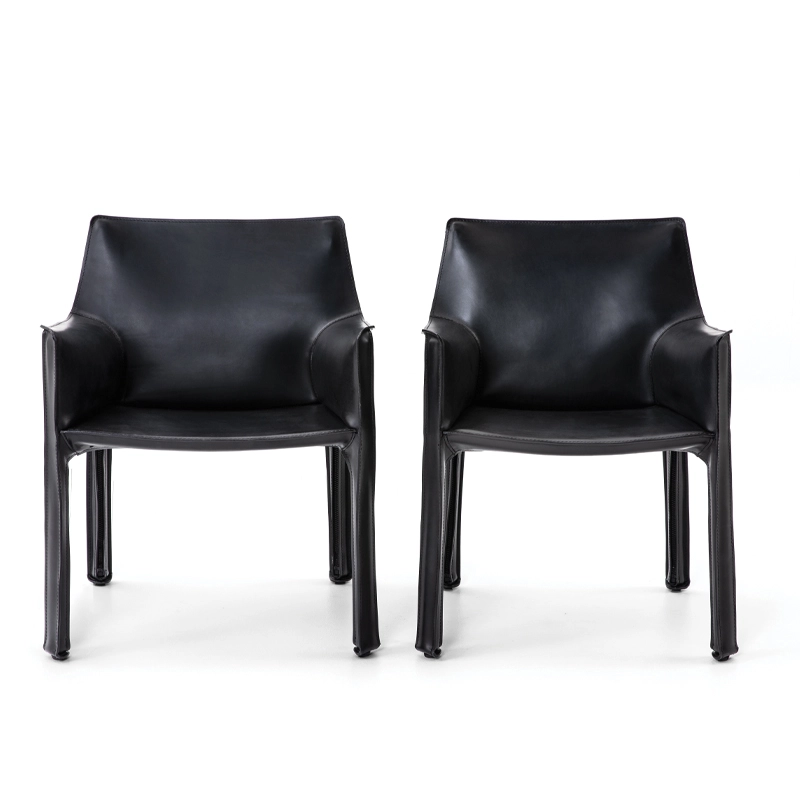 Conçu par Mario Bellini et édité par Cassina, le petit fauteuil Cab 413 incarne un nouveau standard dans le design du mobilier en cuir, souvent imité mais jamais égalé. Créé dans les années 70, Cab devenu une pièce emblématique de la collection "I Contemporanei" (les Contemporains) Cassina. Comme toutes les pièces de la collection Cab, le petit fauteuil Cab 413 est pionnièr en tant que première chaise au monde à présenter une structure autoportante en cuir, s'inspirant de la relation entre le squelette et la peau. Son revêtement se compose de 16 pièces de cuir, façonnées lors de 14 opérations manuelles. Ces pièces découpées sont minutieusement assemblées après un processus de biseautage visant à réduire l'épaisseur des zones à joindre. Ensuite, le revêtement est délicatement ajusté sur un armature en acier, fermé à l'aide de fermetures éclair, rappelant la finition d'une robe de tailleur. Aujourd'hui, la collection Cab Cassina par Mario Bellini évolue pour répondre aux besoins contemporains, tout en conservant la même qualité de travail du cuir.