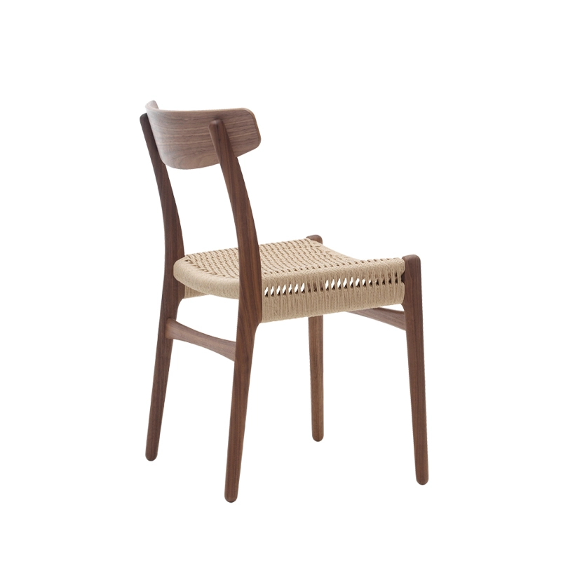 Simple à première vue, la chaise CH23 intègre de nombreux détails raffinés et sophistiqués, parmi lesquels les élégants capuchons du dossier, une assise à double tissage et des pieds arrière arqués qui assurent une stabilité optimale. En 2017 Carl Hansen & Søn donne une nouvelle vie à la CH23, voulant réintégrer à sa collection les premières pièces iconiques. Comme toujours, la conception reste fidèle aux croquis originaux dessinés à la main de Wegner, avec tous les composants esthétiques et structurels intacts.