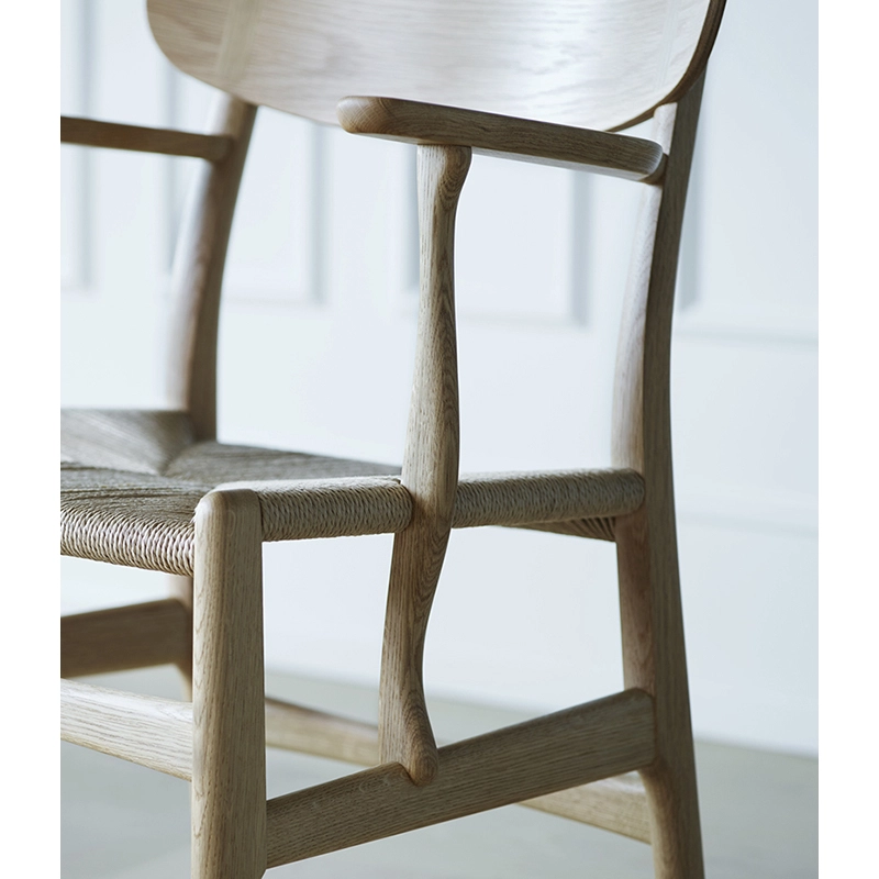 La chaise CH26 de Hans J. Wegner a été mise en production par Carl Hansen & Søn en étroite collaboration avec le studio de design Hans J. Wegner et conformément au dessin de travail original de Wegner. Cette pièce fait partie d'une série de chaises emblématiques créées par Wegner pour Carl Hansen & Søn. Avec cette chaise, Wegner a traduit la forme du fauteuil CH22 pour créer un fauteuil de repas, le CH26. Pourtant, il n'a jamais fabriqué de maquette du fauteuil et celui-ci est resté inconnu du public pendant des décennies. En 2016 - la même année que la réintroduction du CH22 - Carl Hansen & Søn a donné vie au design du CH26. Le petit fauteuil CH26 ressemble beaucoup à la version lounge avec ses formes organiques, son dossier raffiné et son assise tissée à la main.