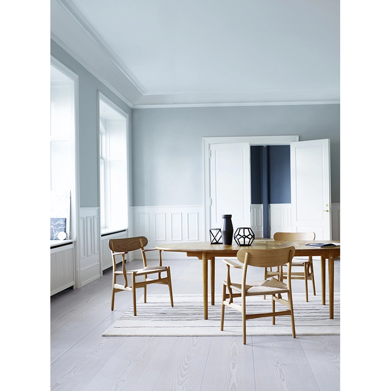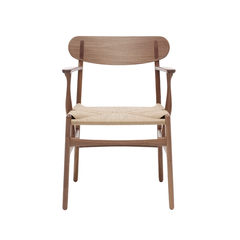 La chaise CH26 de Hans J. Wegner a été mise en production par Carl Hansen & Søn en étroite collaboration avec le studio de design Hans J. Wegner et conformément au dessin de travail original de Wegner. Cette pièce fait partie d'une série de chaises emblématiques créées par Wegner pour Carl Hansen & Søn. Avec cette chaise, Wegner a traduit la forme du fauteuil CH22 pour créer un fauteuil de repas, le CH26. Pourtant, il n'a jamais fabriqué de maquette du fauteuil et celui-ci est resté inconnu du public pendant des décennies. En 2016 - la même année que la réintroduction du CH22 - Carl Hansen & Søn a donné vie au design du CH26. Le petit fauteuil CH26 ressemble beaucoup à la version lounge avec ses formes organiques, son dossier raffiné et son assise tissée à la main.