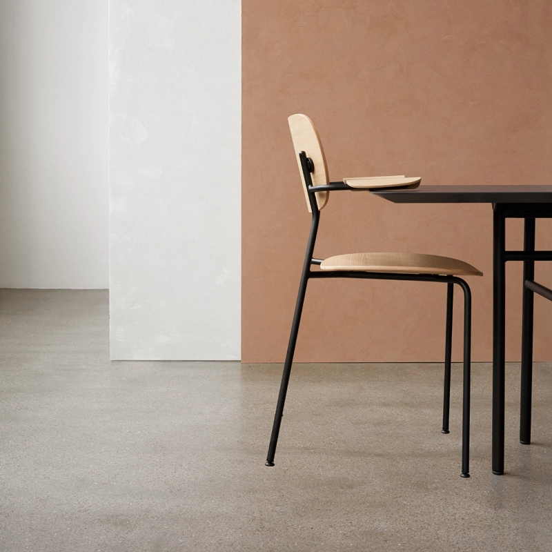 “Ensemble”, “mutuellement”, “en commun” : les mots qui définisse le préfixe « Co » sont le cœur de la chaise Co Chair. Conçue en collaboration avec le Office Group et Norm Architects, cette chaise multifonctionnelle s’adapte à une grande variété de besoins et de styles d’espaces. Elle convient aussi bien aux besoins des environnements publics que privés, la rendant aussi attrayante dans une salle à manger que dans une salle de conférence. Editée par Menu, la chaise Co Chair allie une silhouette légère et un grand confort d’assise. S’ajoute à ces caractéristiques la possibilité de les empiler jusqu’à 15 pièces. Esthétiquement, la forme profilée et les matériaux chaleureux apportent la signature de Norm Architects. La version avec accoudoirs ajoute une touche de confort et permet de la suspendre sur une table pour faciliter le ménage.