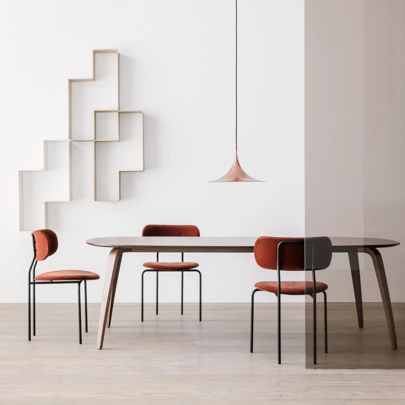 Gubi produit ainsi une chaise a la personnalité unique et accueillante qui s’intègre dans différents styles de lieux, que ce soit des ambiances épurées ou des univers imposants et raffinés.