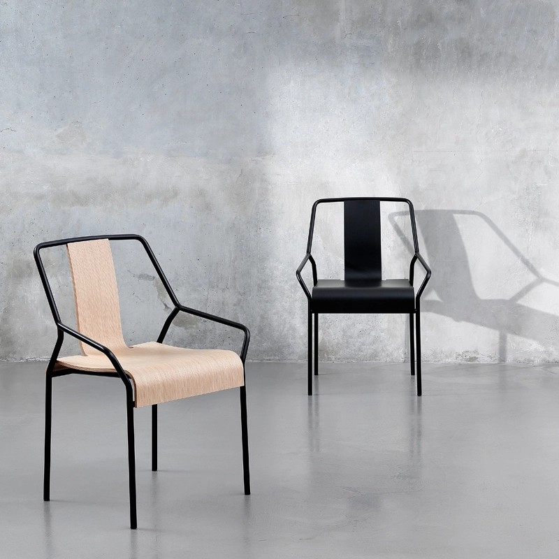 DAO est un petit fauteuil à accoudoirs dessiné par Shin Azumi pour le nouvel éditeur français Coedition. Le design de Shin Azumi se caractérise par des lignes claires et essentielles, cherchant le parfait équilibre entre l'idée, la fonction et l'esthétique. La chaise DAO est dotée d'une structure graphique en métal laqué noir. Le placage chêne est moulé pour créer l'assise et le dossier d'un seul tenant. En version chêne naturel ou laqué noir, la chaise DAO est parfaite pour une salle à manger élégante et au design sobre.