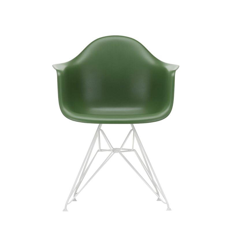 Les Plastic Armchairs dessinés par Charles et Ray Eames dans les années 50 ont été présentés pour la première fois dans le cadre du concours « Low Cost Furniture Design » organisé par le Museum of Modern Art de New York. La coque aux lignes organiques était à l'origine en fibre de verre. Rééditée par Vitra avec une coque en polypropylène, la Eames Plastic DAR (Dining Armchair Rod base) offre toujours un grand confort à un prix accessible. Le piètement Tour Eiffel est réalisé en tiges d'acier chomé brillant. C'est un petit fauteuil idéal pour des repas qui se prolongent. La collection Eames Plastic Chair est désormais éditée avec une nouvelle hauteur d'assise de 43cm, répondant aux nouvelles normes de mobilier.