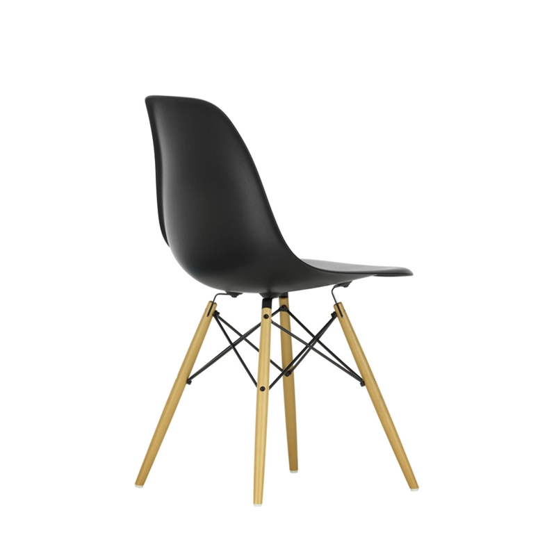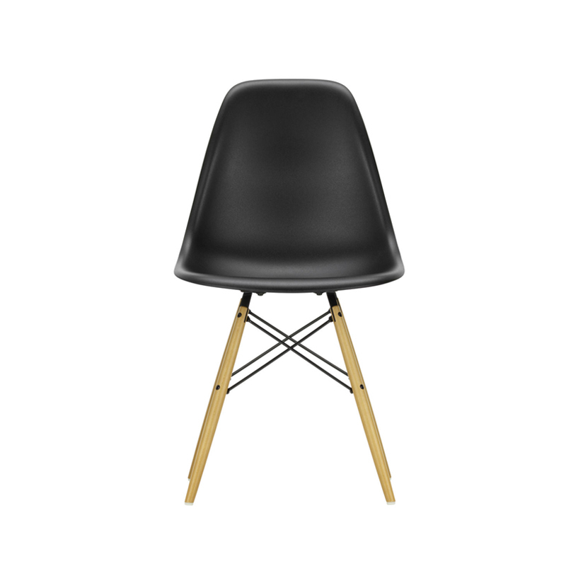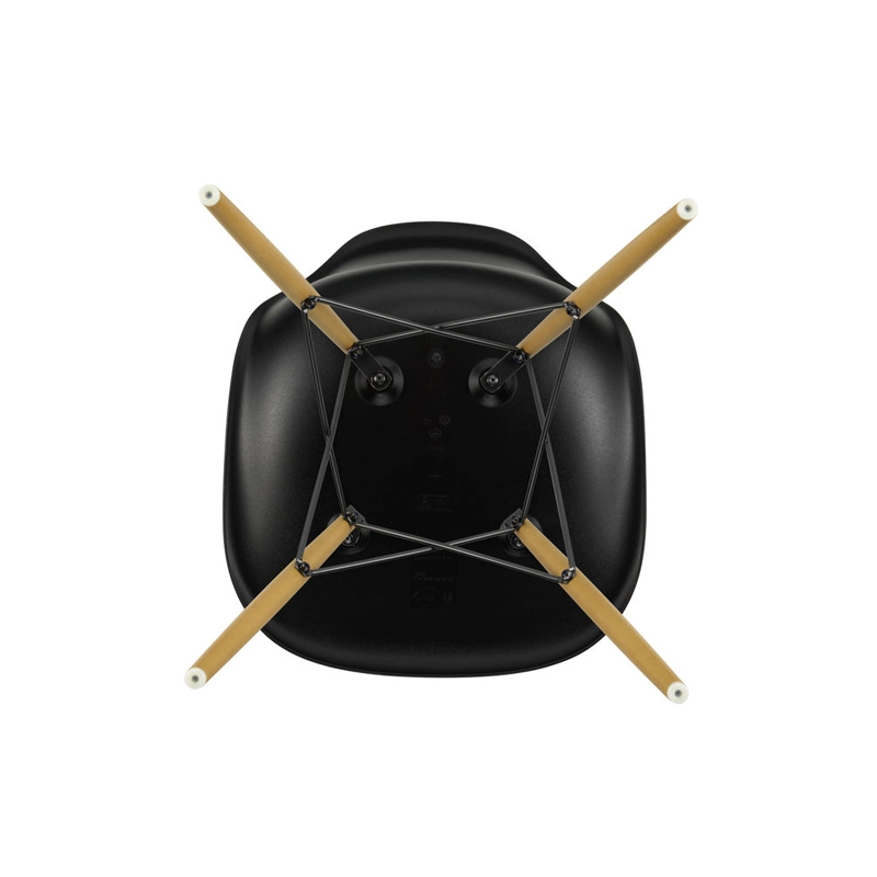 Eames Plastic Chair DSW (Dining Side chair Wooden base) est dotée d'un piétement à quatre pieds en érable teinté et laqué avec des croisillons en tubes d’acier. L’association du plastique et du bois confère à la création classique un aspect chaleureux et un charme décontracté. Avec le polypropylène moulé et la nouvelle version des modèles en fibre de verre,