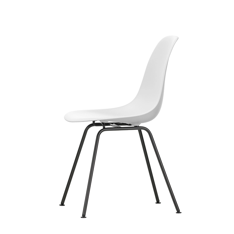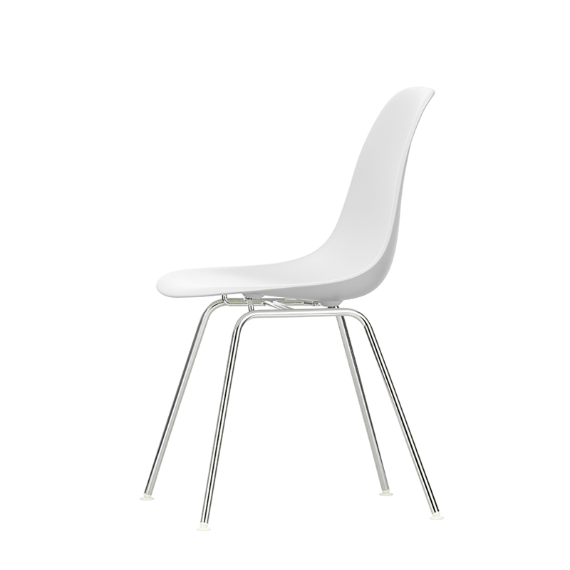 Les Plastic Armchairs dessinés par Charles et Ray Eames dans les années 50 ont été présentés pour la première fois dans le cadre du concours « Low Cost Furniture Design » organisé par le Museum of Modern Art de New York. La coque aux lignes organiques était à l'origine en fibre de verre. Rééditée par Vitra avec une coque en polypropylène, La chaise DSX (Dining Height Side Chair X-Base) à l'esthétique sobre se définit par un piètement à quatre pieds en tube d'acier et une coque aux formes organiques disponible en une large palette de couleurs. Le piètement se décline en version chromée ou finition époxy noir qui est adapté aussi à une utilisation à l'extérieur. La chaise DSX s'adapte aussi bien aux espaces domestiques qu'aux environnements collectifs. En adoptant le polypropylène moulé, Vitra en a amélioré à la fois la robustesse, l'élasticité et le confort. À partir d'une unique forme de coque, la chaise est déclinée en trois grandes familles caractérisées par la forme du piètement : la chaise Eames DSR avec piètement Eiffel, la chaise Eames DSW avec piètement à croisillons de bois et la chaise Eames DSX à piètement tubulaire simple. Les chaises Eames DSXE sont disponibles en plusieurs couleurs, avec ou sans coussin d'assise ou rembourrage intérieur.