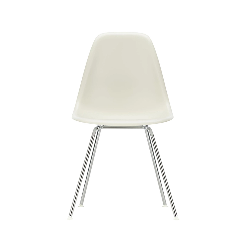 Les Plastic Armchairs dessinés par Charles et Ray Eames dans les années 50 ont été présentés pour la première fois dans le cadre du concours « Low Cost Furniture Design » organisé par le Museum of Modern Art de New York. La coque aux lignes organiques était à l'origine en fibre de verre. Rééditée par Vitra avec une coque en polypropylène, La chaise DSX (Dining Height Side Chair X-Base) à l'esthétique sobre se définit par un piètement à quatre pieds en tube d'acier et une coque aux formes organiques disponible en une large palette de couleurs. Le piètement se décline en version chromée ou finition époxy noir qui est adapté aussi à une utilisation à l'extérieur. La chaise DSX s'adapte aussi bien aux espaces domestiques qu'aux environnements collectifs. En adoptant le polypropylène moulé, Vitra en a amélioré à la fois la robustesse, l'élasticité et le confort. À partir d'une unique forme de coque, la chaise est déclinée en trois grandes familles caractérisées par la forme du piètement : la chaise Eames DSR avec piètement Eiffel, la chaise Eames DSW avec piètement à croisillons de bois et la chaise Eames DSX à piètement tubulaire simple. Les chaises Eames DSXE sont disponibles en plusieurs couleurs, avec ou sans coussin d'assise ou rembourrage intérieur.