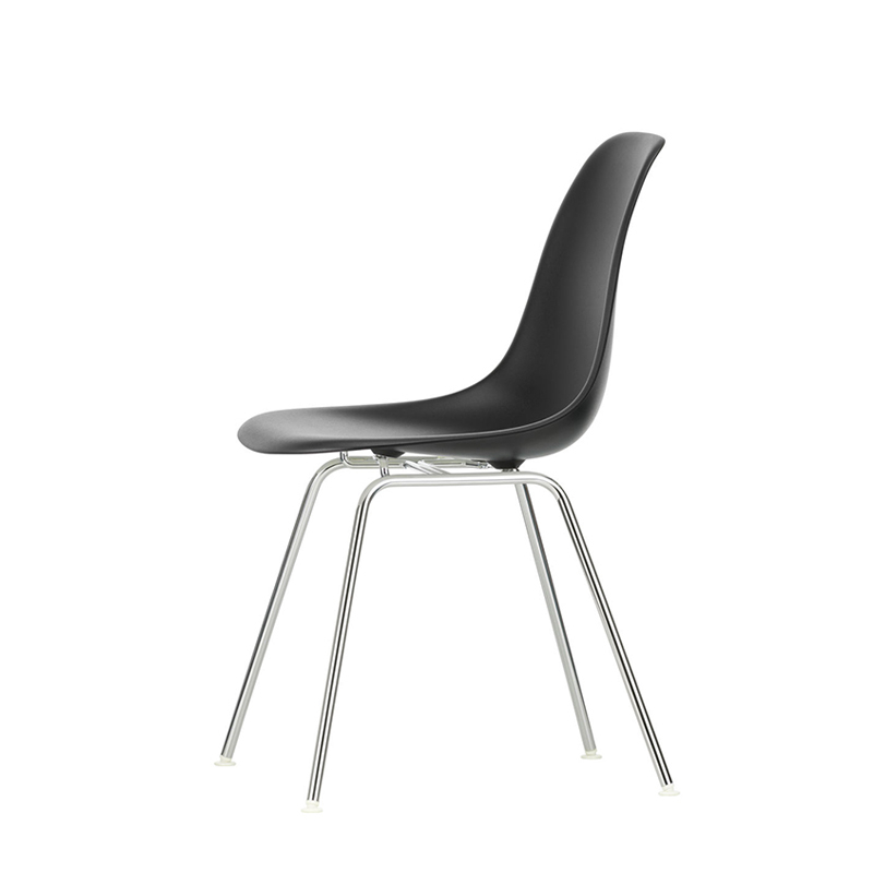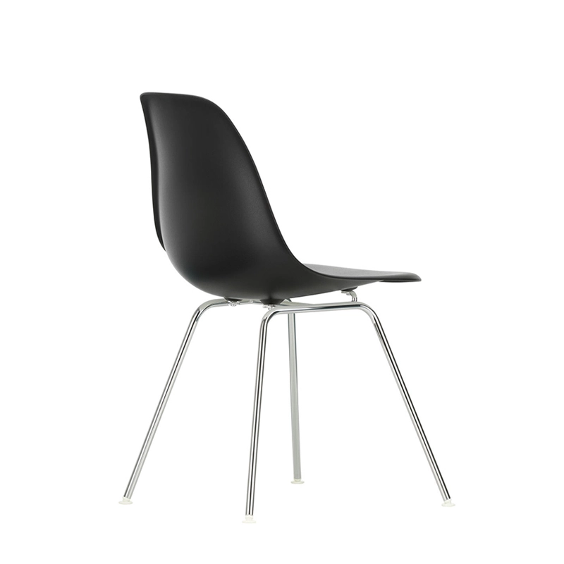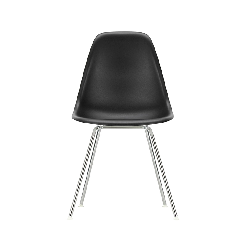 Les Plastic Armchairs dessinés par Charles et Ray Eames dans les années 50 ont été présentés pour la première fois dans le cadre du concours « Low Cost Furniture Design » organisé par le Museum of Modern Art de New York. La coque aux lignes organiques était à l'origine en fibre de verre. Rééditée par Vitra avec une coque en polypropylène, La chaise DSX (Dining Height Side Chair X-Base) à l'esthétique sobre se définit par un piètement à quatre pieds en tube d'acier et une coque aux formes organiques disponible en une large palette de couleurs. Le piètement se décline en version chromée ou finition époxy noir qui est adapté aussi à une utilisation à l'extérieur. La chaise DSX s'adapte aussi bien aux espaces domestiques qu'aux environnements collectifs. En adoptant le polypropylène moulé, Vitra en a amélioré à la fois la robustesse, l'élasticité et le confort. À partir d'une unique forme de coque, la chaise est déclinée en trois grandes familles caractérisées par la forme du piètement : la chaise Eames DSR avec piètement Eiffel, la chaise Eames DSW avec piètement à croisillons de bois et la chaise Eames DSX à piètement tubulaire simple. Les chaises Eames DSXE sont disponibles en plusieurs couleurs, avec ou sans coussin d'assise ou rembourrage intérieur.